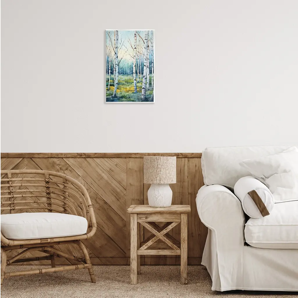 Our wall plaques start as high-quality lithograph prints mounted on durable 0.5-inch thick MDF wood. Each piece is hand finished and comes with a fresh layer of white foil on the sides to give it a crisp, clean look. Plaques arrive ready to hang without installation and come with removable plastic corners to keep them from damage in transit. Stupell Wall Art is made in the USA.Features: Dimensions: 10 x 0.5 x 15 InchesWall Plaque Product Sizes Include 10"x15" and 13"x19". All wall plaque products have a 0.5" Depth. Wall Art is Ready to Hang with Hardware Free Hanging. No installation required. For Easy Set Up Lean or Layer Artwork on Shelf or Against Wall.All of our wall plaques start off as high quality lithograph prints that are then mounted on durable 0.5 inch thick MDF wood. Each piece is hand finished and comes with a fresh layer of foil on the sides to give it a crisp clean look. Made In USA.Artwork Relates To: Plant, Tree, Birch, Grove, Land, Nature, Vegetation, Woodland, Forest, Foliage, Autumn, FallDesign by Roozbeh Bahramali