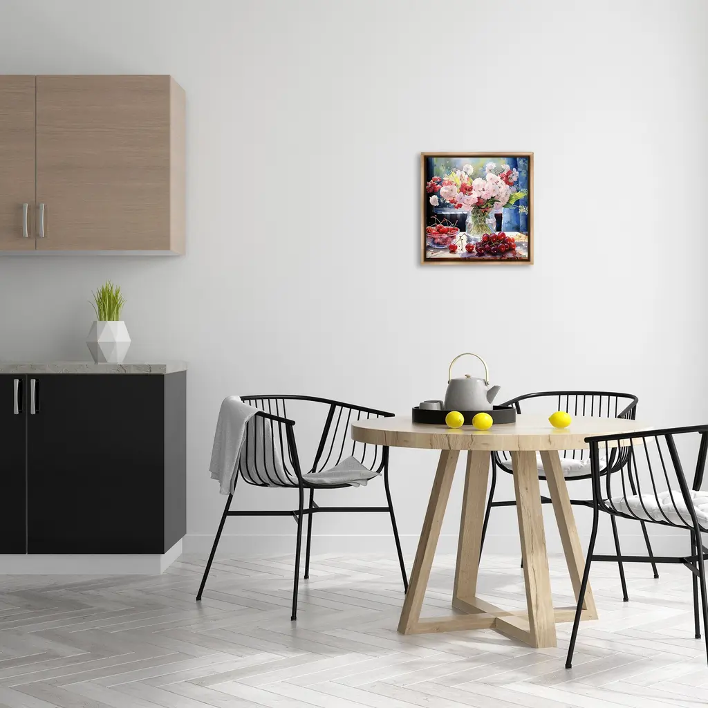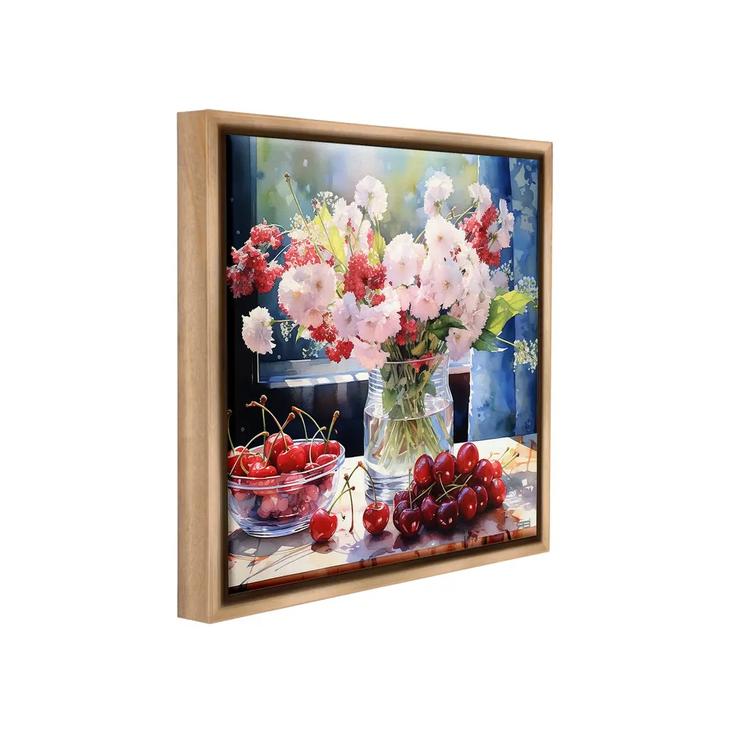 Elevate your home or office to the next level with Stupell Framed Floating Canvas Wall Art. Our premium hand-stretched canvas is mounted securely into a sturdy lightweight frame. The museum-style gap between the wrapped canvas and the box frame gives the illusion of floating artwork. Stupell Wall Art is made in the USA.Features: Dimensions: 18 x 1.7 x 18 Frame, 17 x 1.5 x 17 Canvas ArtFloating Frame Canvas Products are available in sizes 18"x18" and 25"x25". All Floating Frame Canvas Products have a 1.7" Depth.Wall Art is Ready to Hang with Hardware Free Hanging. No Installation required. For Easy Set Up Lean or Layer Artwork on Shelf or Against Wall. Artwork is Permently Fixed into the Frame.Our elevated 1.7" Thick Floating Frame is the perfect complement to our canvas style Wall Art. We use only the highest quality inks in house with industry leading printing solutions. Canvas is hand stretched over a durable wood foundation and then mounted securly into a Modern Box Frame. Made in the USA.Artwork Relates To: Food, Fruit, Plant, Produce, Flower, Cherry, Bouquet, Pink, Summer, SpringDesign by RB