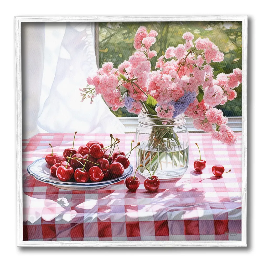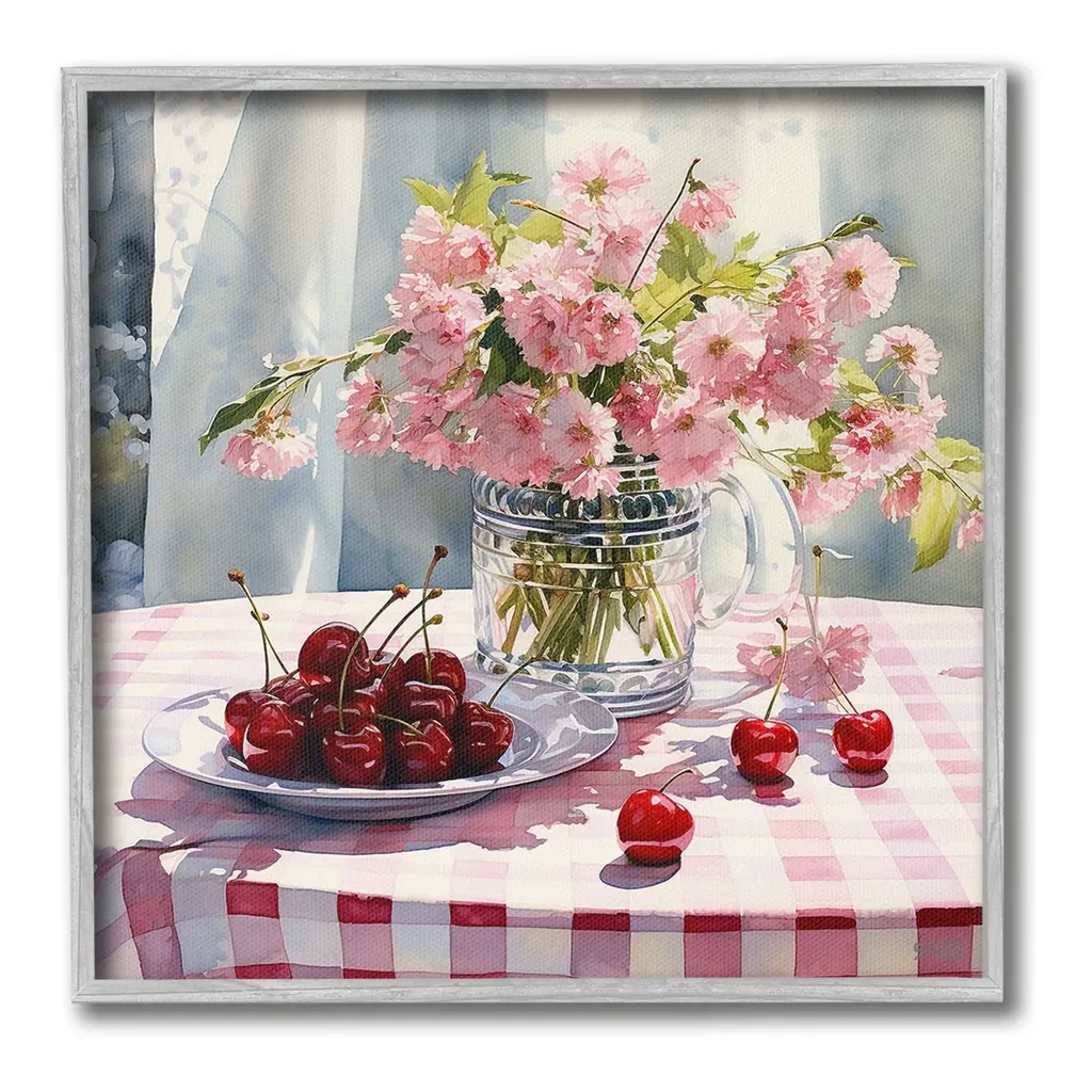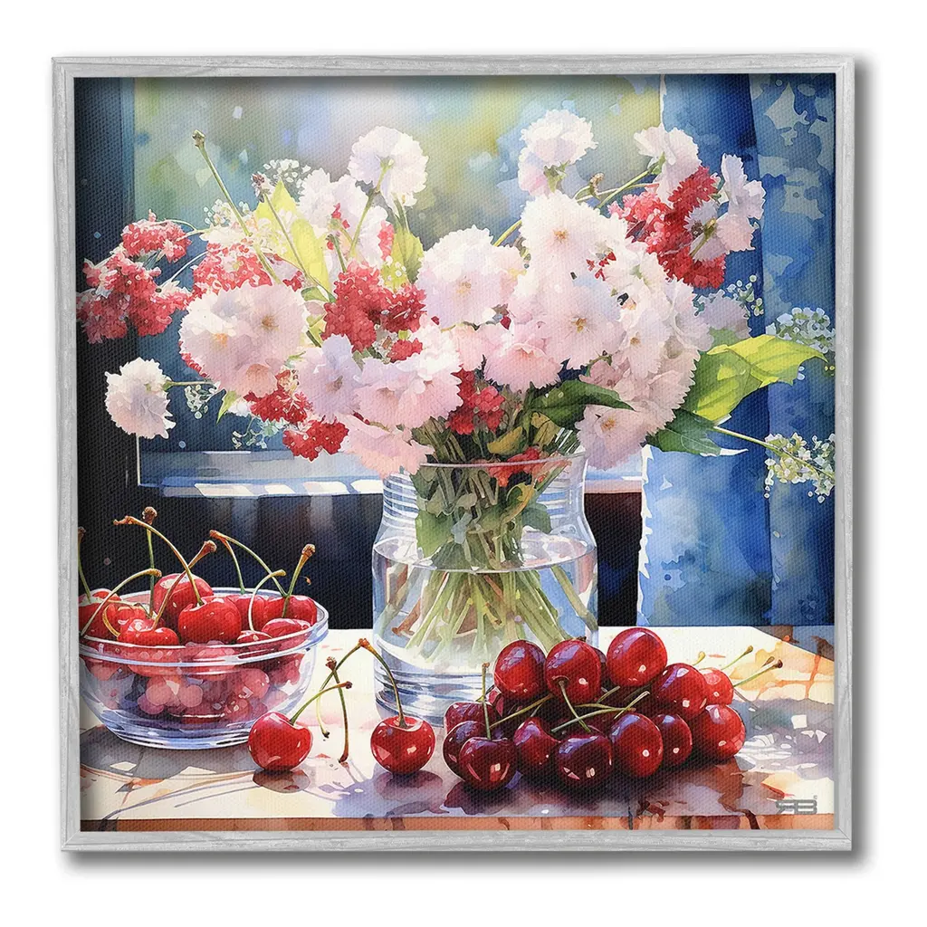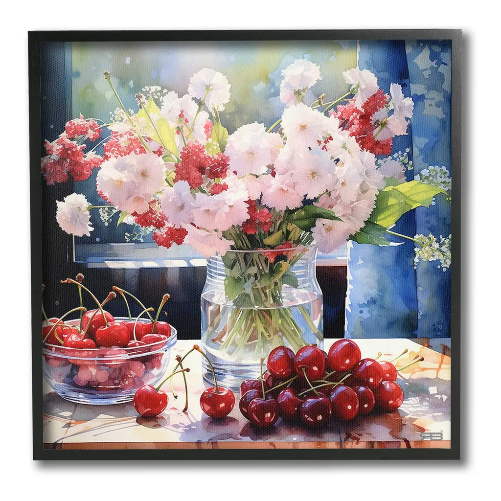 Add dimension to any room with our textured Framed Giclee Artwork. Our framed artwork is securely mounted into a 1.5-inch thick wood grain frame and ready to hang. Frames are available in three alluring styles: black, gray farmhouse and white. In addition, you should check out our oversized options if you want a statement piece. Stupell Wall Art is made in the USA.Features: Dimensions: 12 x 1.5 x 12 FramedFramed Giclee Product Sizes Include 12"x12", 17"x17", and 24"x24". Framed Giclee Products have a 1.5" Depth. Wall Art is Ready to Hang with Hardware Free Hanging. No installation required. For Easy Set Up Lean or Layer Artwork on Shelf or Against Wall.Our giclée prints are carefully mounted on a durable MDF backing, and then perfectly finished in a 1.5 inch thick woodgrain frame. Mounted frame colors include black, gray farmhouse and white. Made In USA.Artwork Relates To: Food, Fruit, Plant, Produce, Flower, Cherry, Bouquet, Pink, Summer, SpringDesign by RB