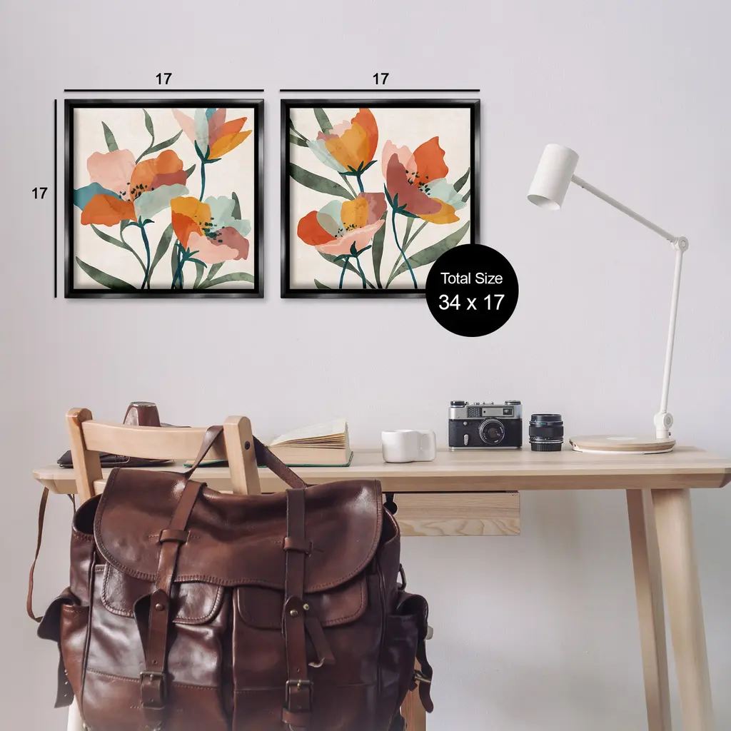 Elevate your home or office to the next level with Stupell Framed Floating Canvas Wall Art. Our premium hand-stretched canvas is mounted securely into a sturdy lightweight frame. The museum-style gap between the wrapped canvas and the box frame gives the illusion of floating artwork. Stupell Wall Art is made in the USA.Features: Dimensions: 2 Piece Set, Each Frame is 18 x 1.7 x 18Two Piece Floating Frame Canvas Products are available as 18"x18" or 25"x25" Panels. All Floating Frame Canvas Products have a 1.7" Depth.Wall Art is Ready to Hang with Hardware Free Hanging. No Installation required. For Easy Set Up Lean or Layer Artwork on Shelf or Against Wall. Artwork is Permently Fixed into the Frame.Our elevated 1.7" Thick Floating Frame is the perfect complement to our canvas style Wall Art. We use only the highest quality inks in house with industry leading printing solutions. Canvas is hand stretched over a durable wood foundation and then mounted securly into a Modern Box Frame. Made in the USA.Artwork Relates To: Modern, Painting, Floral, Pattern, Plant, Blossom, Petal, GeometricDesign by Nina Blue
