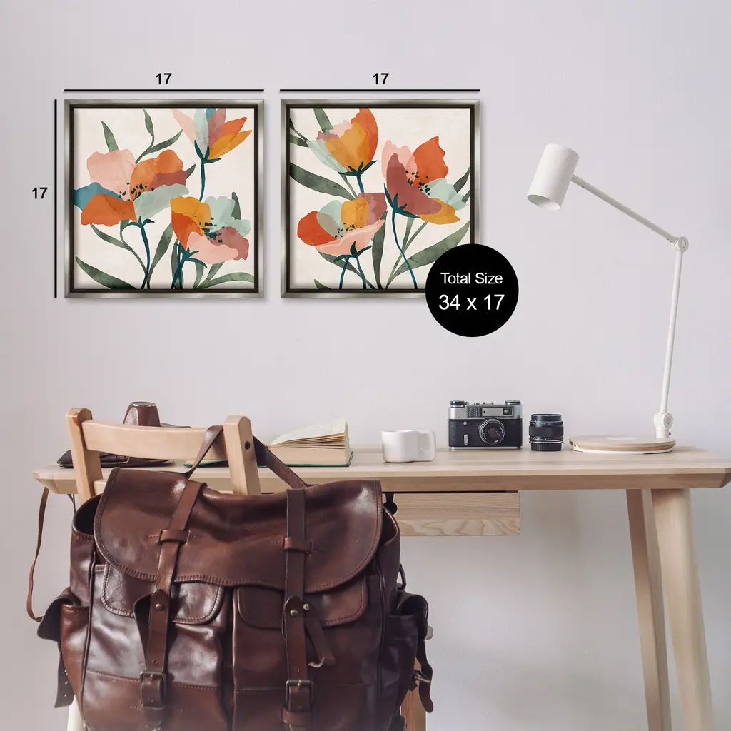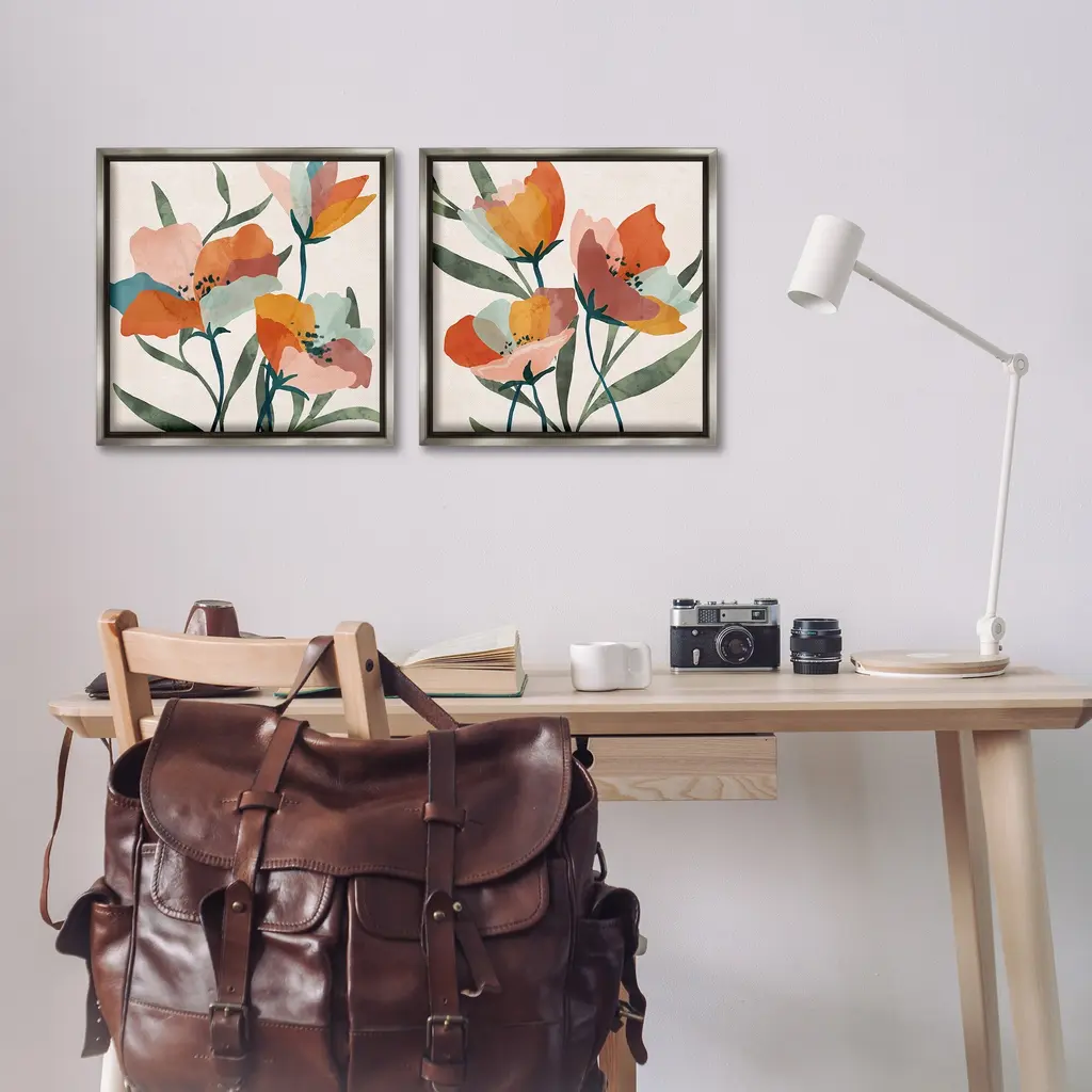 Elevate your home or office to the next level with Stupell Framed Floating Canvas Wall Art. Our premium hand-stretched canvas is mounted securely into a sturdy lightweight frame. The museum-style gap between the wrapped canvas and the box frame gives the illusion of floating artwork. Stupell Wall Art is made in the USA.Features: Dimensions: 2 Piece Set, Each Frame is 18 x 1.7 x 18Two Piece Floating Frame Canvas Products are available as 18"x18" or 25"x25" Panels. All Floating Frame Canvas Products have a 1.7" Depth.Wall Art is Ready to Hang with Hardware Free Hanging. No Installation required. For Easy Set Up Lean or Layer Artwork on Shelf or Against Wall. Artwork is Permently Fixed into the Frame.Our elevated 1.7" Thick Floating Frame is the perfect complement to our canvas style Wall Art. We use only the highest quality inks in house with industry leading printing solutions. Canvas is hand stretched over a durable wood foundation and then mounted securly into a Modern Box Frame. Made in the USA.Artwork Relates To: Modern, Painting, Floral, Pattern, Plant, Blossom, Petal, GeometricDesign by Nina Blue