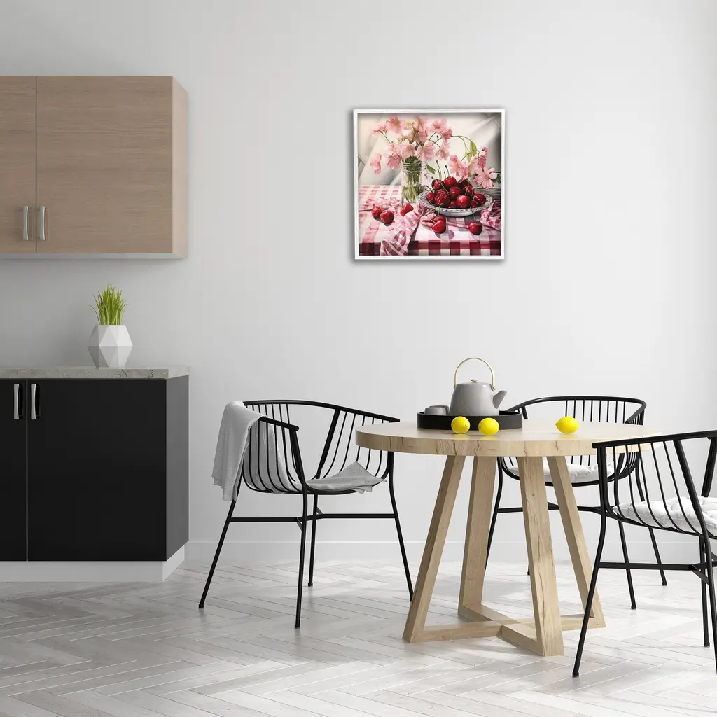 Add dimension to any room with our textured Framed Giclee Artwork. Our framed artwork is securely mounted into a 1.5-inch thick wood grain frame and ready to hang. Frames are available in three alluring styles: black, gray farmhouse and white. In addition, you should check out our oversized options if you want a statement piece. Stupell Wall Art is made in the USA.Features: Dimensions: 12 x 1.5 x 12 FramedFramed Giclee Product Sizes Include 12"x12", 17"x17", and 24"x24". Framed Giclee Products have a 1.5" Depth. Wall Art is Ready to Hang with Hardware Free Hanging. No installation required. For Easy Set Up Lean or Layer Artwork on Shelf or Against Wall.Our giclée prints are carefully mounted on a durable MDF backing, and then perfectly finished in a 1.5 inch thick woodgrain frame. Mounted frame colors include black, gray farmhouse and white. Made In USA.Artwork Relates To: Food, Fruit, Plant, Produce, Flower, Cherry, Bouquet, Pink, Summer, Spring, Gingham, PatternDesign by RB