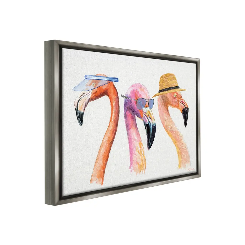 Stupell Summer Flamingo Fashion Framed Floater Canvas Wall Art Design By Jennifer Redstreake - 21 X 17 - Grey