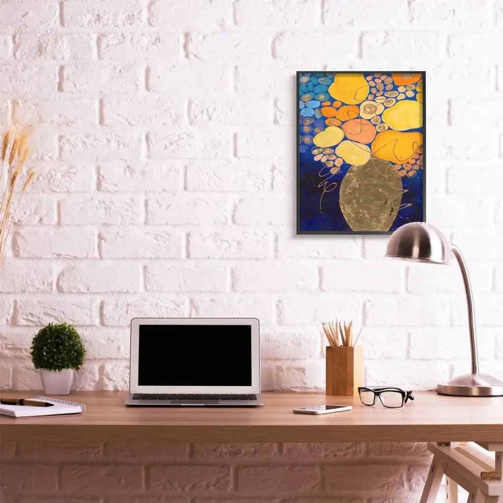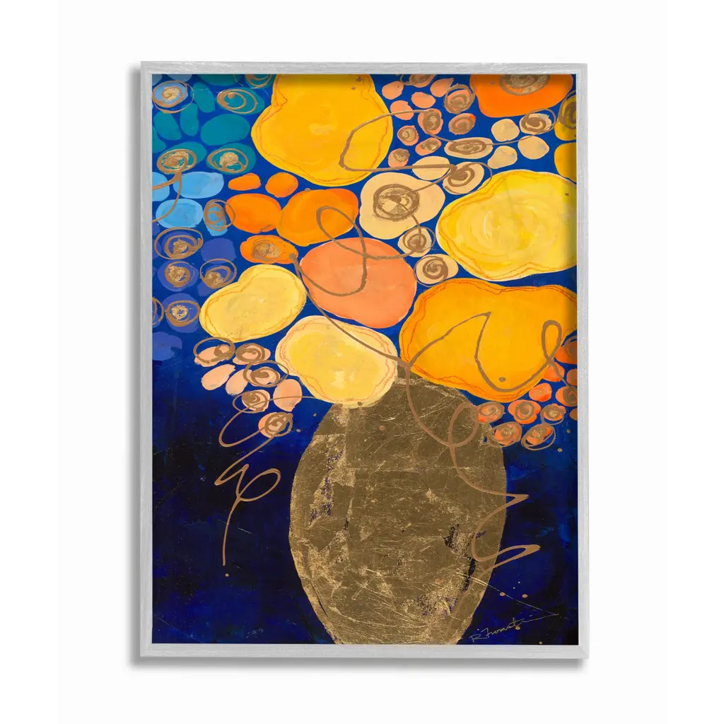 Stupell Summer Floral Abstract Blue Orange Yellow Framed Wall Art - Multi-Color - 16 X 20 - Black