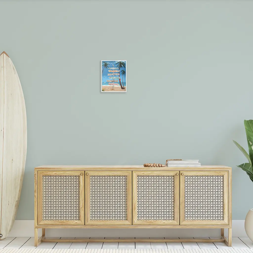 Add dimension to any room with our textured Framed Giclee Artwork. Our framed artwork is securely mounted into a 1.5-inch thick wood grain frame and ready to hang. Frames are available in three alluring styles: black, gray farmhouse and white. In addition, you should check out our oversized options if you want a statement piece. Stupell Wall Art is made in the USA.Features: Dimensions: 11 x 1.5 x 14 FramedFramed Giclee Products are available in the sizes 11"x14", 16"x20" or 24"x30". All Framed Giclee Products have a 1.5" Depth. Wall Art is Ready to Hang with Hardware Free Hanging. No installation required. For Easy Set Up Lean or Layer Artwork on Shelf or Against Wall.Our giclée prints are carefully mounted on a durable MDF backing, and then perfectly finished in a 1.5 inch thick woodgrain frame. Mounted frame colors include black, gray farmhouse and white. Made In USA.Artwork Relates To: Summer, Scenery, Sea, Water, Shoreline, Beach, Coast, Shore, Palm Tree, Sign, Seagull, Sandpiper, BirdDesign by Gail Fraser
