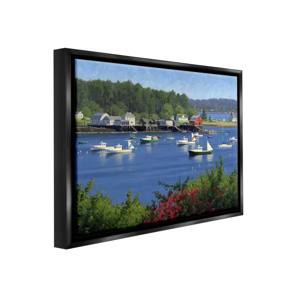 Elevate your home or office to the next level with Stupell Framed Floating Canvas Wall Art. Our premium hand-stretched canvas is mounted securely into a sturdy lightweight frame. The museum-style gap between the wrapped canvas and the box frame gives the illusion of floating artwork. Stupell Wall Art is made in the USA.Features: Dimensions: 21 x 1.7 x 17 Frame, 20 x 1.5 x 16 Canvas ArtFloating Frame Canvas Products are available in sizes 21"x17" and 31"x25". All Floating Frame Canvas Products have a 1.7" Depth.Wall Art is Ready to Hang with Hardware Free Hanging. No Installation required. For Easy Set Up Lean or Layer Artwork on Shelf or Against Wall. Artwork is Permently Fixed into the Frame.Our elevated 1.7" Thick Floating Frame is the perfect complement to our canvas style Wall Art. We use only the highest quality inks in house with industry leading printing solutions. Canvas is hand stretched over a durable wood foundation and then mounted securly into a Modern Box Frame. Made in the USA.Artwork Relates To: Water, Waterfront, Nature, Scenery, Harbor, Pier, Boat, Sea, Watercraft, Port, Coast, Marina, Sailboat, Landscape, Lake, Summer, BeachDesign by Jimmy Dyer