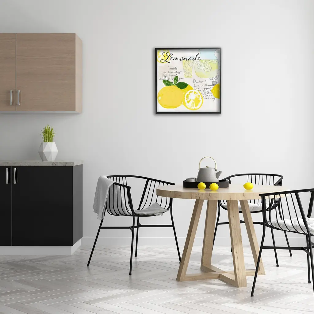 Add dimension to any room with our textured Framed Giclee Artwork. Our framed artwork is securely mounted into a 1.5-inch thick wood grain frame and ready to hang. Frames are available in three alluring styles: black, gray farmhouse and white. In addition, you should check out our oversized options if you want a statement piece. Stupell Wall Art is made in the USA.Features: Dimensions: 12 x 1.5 x 12 FramedFramed Giclee Product Sizes Include 12"x12", 17"x17", and 24"x24". Framed Giclee Products have a 1.5" Depth. Wall Art is Ready to Hang with Hardware Free Hanging. No installation required. For Easy Set Up Lean or Layer Artwork on Shelf or Against Wall.Our giclée prints are carefully mounted on a durable MDF backing, and then perfectly finished in a 1.5 inch thick woodgrain frame. Mounted frame colors include black, gray farmhouse and white. Made In USA.Artwork Relates To: Citrus, Food, Fruit, Lemon, Plant, Produce, Country, Kitchen, Recipe, LemonadeDesign by Daniela Santiago