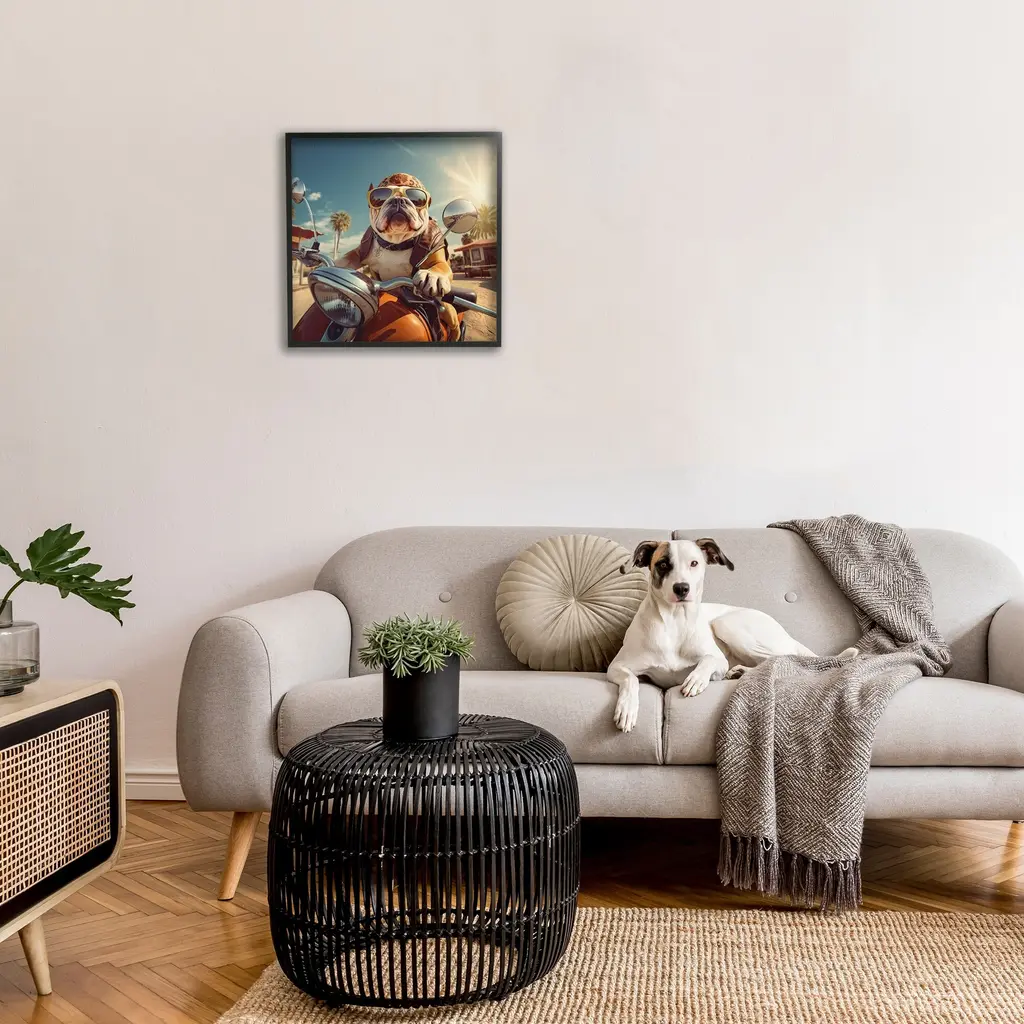 Add dimension to any room with our textured Framed Giclee Artwork. Our framed artwork is securely mounted into a 1.5-inch thick wood grain frame and ready to hang. Frames are available in three alluring styles: black, gray farmhouse and white. In addition, you should check out our oversized options if you want a statement piece. Stupell Wall Art is made in the USA.Features: Dimensions: 12 x 1.5 x 12 FramedFramed Giclee Product Sizes Include 12"x12", 17"x17", and 24"x24". Framed Giclee Products have a 1.5" Depth. Wall Art is Ready to Hang with Hardware Free Hanging. No installation required. For Easy Set Up Lean or Layer Artwork on Shelf or Against Wall.Our giclée prints are carefully mounted on a durable MDF backing, and then perfectly finished in a 1.5 inch thick woodgrain frame. Mounted frame colors include black, gray farmhouse and white. Made In USA.Artwork Relates To: Fun, Animal, Canine, Dog, Mammal, Pet, Humor, Funny, Motorcycle, Palm Tree, Tropical, Beach, SummerDesign by Jim Baldwin
