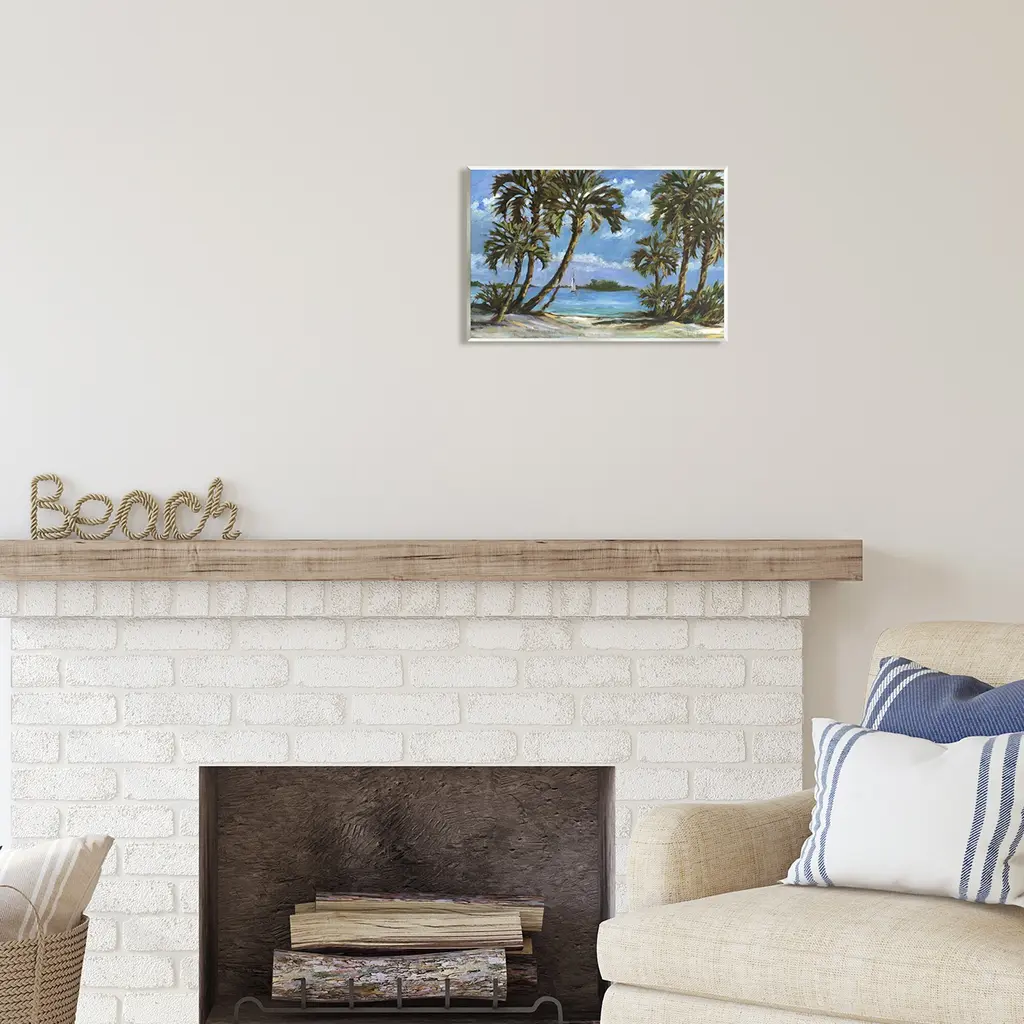 Our wall plaques start as high-quality lithograph prints mounted on durable 0.5-inch thick MDF wood. Each piece is hand finished and comes with a fresh layer of white foil on the sides to give it a crisp, clean look. Plaques arrive ready to hang without installation and come with removable plastic corners to keep them from damage in transit. Stupell Industries Wall Art is made in the USA.Features: Dimensions: 15 x 0.5 x 10 InchesWall Plaque Sizes Include Standard: 15 x 0.5 x 10 Oversized: 19 x 0.5 x 13Wall Art is Ready to Hang with Hardware Free Hanging. No installation required. For Easy Set Up Lean or Layer Artwork on Shelf or Against Wall.All of our wall plaques start off as high quality lithograph prints that are then mounted on durable 0.5 inch thick MDF wood. Each piece is hand finished and comes with a fresh layer of foil on the sides to give it a crisp clean look. Made In USA.Artwork Relates To: Painting, Plant, Tree, Sea, Water, Tropical, Palm Tree, Shoreline, Coast, Beach, Summer, Sailboat, Boat, LandscapeDesign by Paul Brent