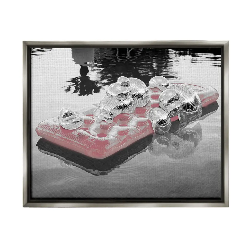 Stupell Summer Pool Disco Balls Framed Floater Canvas Wall Art Design By Ziwei Li - 21 X 17 - Grey