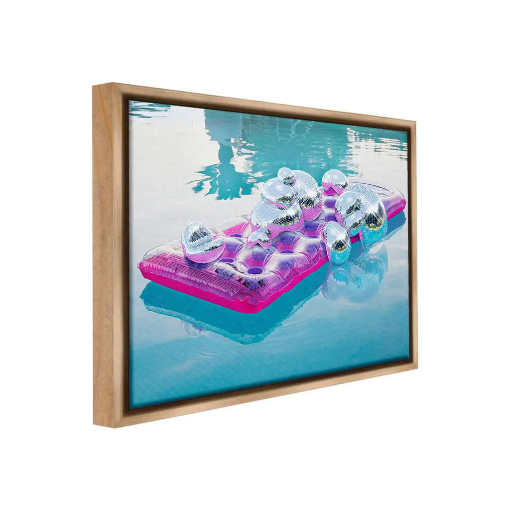 Elevate your home or office to the next level with Stupell Framed Floating Canvas Wall Art. Our premium hand-stretched canvas is mounted securely into a sturdy lightweight frame. The museum-style gap between the wrapped canvas and the box frame gives the illusion of floating artwork. Stupell Wall Art is made in the USA.Features: Dimensions: 21 x 1.7 x 17 Frame, 20 x 1.5 x 16 Canvas ArtFloating Frame Canvas Products are available in sizes 21"x17" and 31"x25". All Floating Frame Canvas Products have a 1.7" Depth.Wall Art is Ready to Hang with Hardware Free Hanging. No Installation required. For Easy Set Up Lean or Layer Artwork on Shelf or Against Wall. Artwork is Permently Fixed into the Frame.Our elevated 1.7" Thick Floating Frame is the perfect complement to our canvas style Wall Art. We use only the highest quality inks in house with industry leading printing solutions. Canvas is hand stretched over a durable wood foundation and then mounted securly into a Modern Box Frame. Made in the USA.Artwork Relates To: Dance, Music, Disco, Pattern, Abstract, Shape, Modern, Glam, Tropical, Summer, PoolDesign by Ziwei Li
