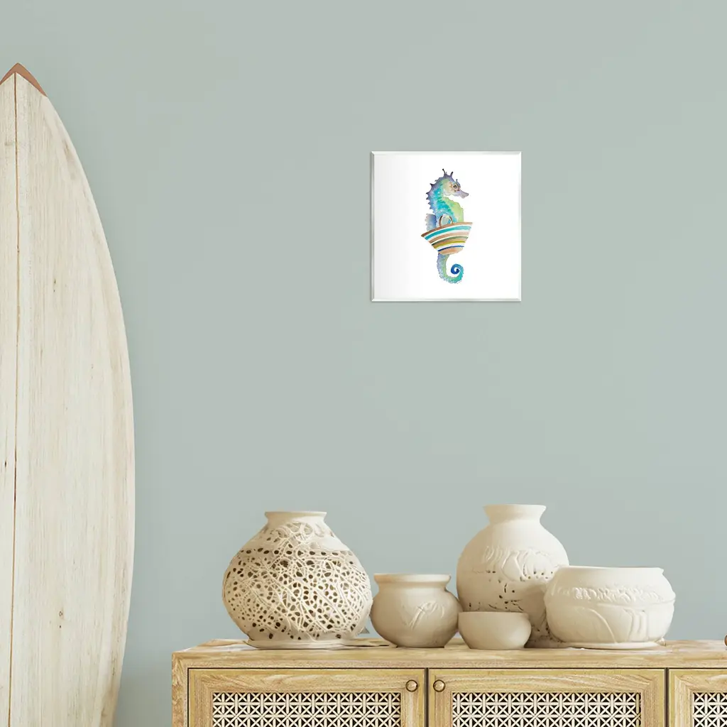 Our wall plaques start as high-quality lithograph prints mounted on durable 0.5-inch thick MDF wood. Each piece is hand finished and comes with a fresh layer of white foil on the sides to give it a crisp, clean look. Plaques arrive ready to hang without installation and come with removable plastic corners to keep them from damage in transit. Stupell Wall Art is made in the USA.Features: Dimensions: 12 x 0.5 x 12 InchesWall Art is Ready to Hang with Hardware Free Hanging. No installation required. For Easy Set Up Lean or Layer Artwork on Shelf or Against Wall.All of our wall plaques start off as high quality lithograph prints that are then mounted on durable 0.5 inch thick MDF wood. Each piece is hand finished and comes with a fresh layer of foil on the sides to give it a crisp clean look. Made In USA.Artwork Relates To: Beach, Summer, Tropical, Nautical, Aquatic, Fun, Animal, SeahorseDesign by Lanie Loreth