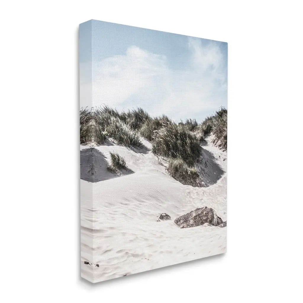 We create our stretched canvas to the highest standards. Using only the highest quality inks and canvas on Mimaki printers, we hand-cut and stretch each piece over a 1.5-inch thick wooden frame for hanging. As a result, the art comes ready to hang on the sturdy ledge with no installation required. Stupell Wall Art is made in the USA.Features: Dimensions: 16 x 1.5 x 20 InchesStretched Canvas Sizes Include Standard: 16 x 1.5 x 20 Large: 20 x 1.5 x 30 X-Large: 30 x 1.5 x 40 Oversized: 36 x 1.5 x 48Wall Art is Ready to Hang with Hardware Free Hanging. No installation required. For Easy Set Up Lean or Layer Artwork on Shelf or Against Wall.Our stretched canvas is created with the highest standards. We use only the highest quality inks and canvas on our in house Mimaki printers, and then hand cut and stretch each piece over a 1.5 inch thick wooden frame for hanging. Made In USA.Artwork Relates To: Beach, Coast, Nature, Sea, Shoreline, Water, Grass, Vegetation, ReedDesign by Incado