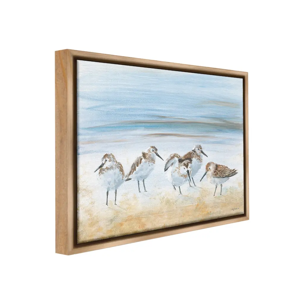 Elevate your home or office to the next level with Stupell Framed Floating Canvas Wall Art. Our premium hand-stretched canvas is mounted securely into a sturdy lightweight frame. The museum-style gap between the wrapped canvas and the box frame gives the illusion of floating artwork. Stupell Wall Art is made in the USA.Features: Dimensions: 21 x 1.7 x 17 Frame, 20 x 1.5 x 16 Canvas ArtFloating Frame Canvas Products are available in sizes 21"x17" and 31"x25". All Floating Frame Canvas Products have a 1.7" Depth.Wall Art is Ready to Hang with Hardware Free Hanging. No Installation required. For Easy Set Up Lean or Layer Artwork on Shelf or Against Wall. Artwork is Permently Fixed into the Frame.Our elevated 1.7" Thick Floating Frame is the perfect complement to our canvas style Wall Art. We use only the highest quality inks in house with industry leading printing solutions. Canvas is hand stretched over a durable wood foundation and then mounted securly into a Modern Box Frame. Made in the USA.Artwork Relates To: Animal, Beak, Bird, Beach, Abstract, Summer, Shore, Ocean, Sea, SandpiperDesign by Pam Britton