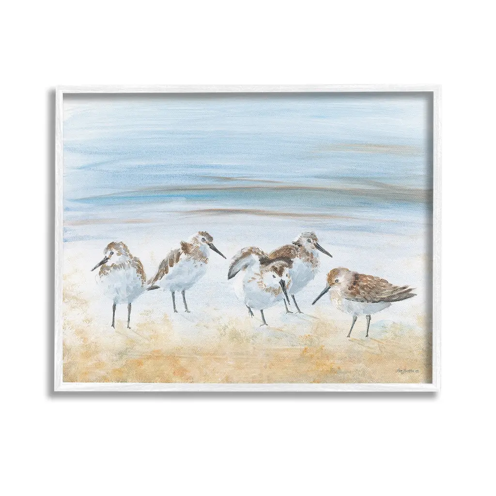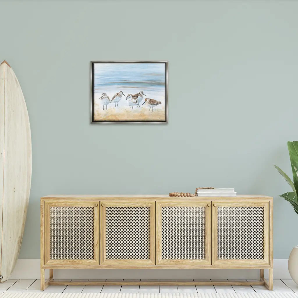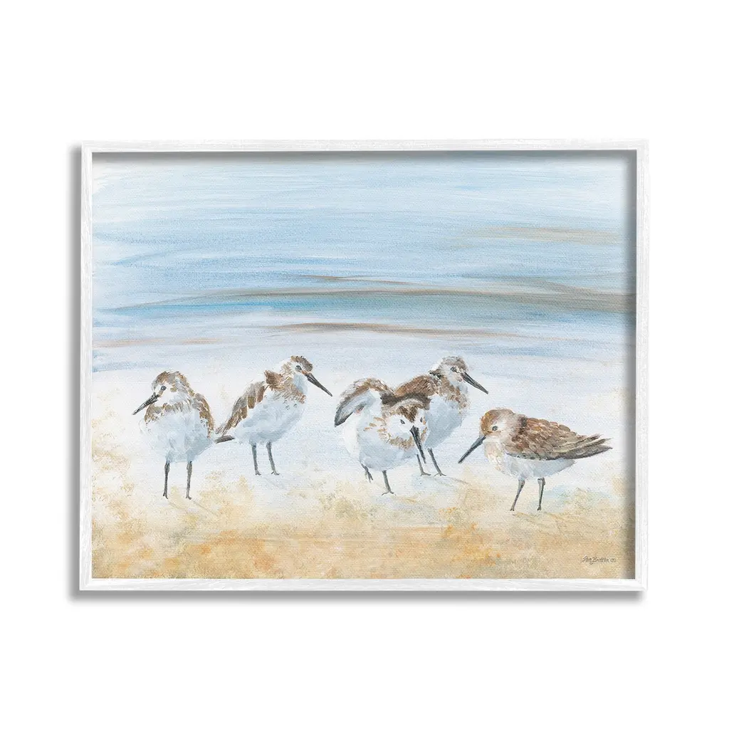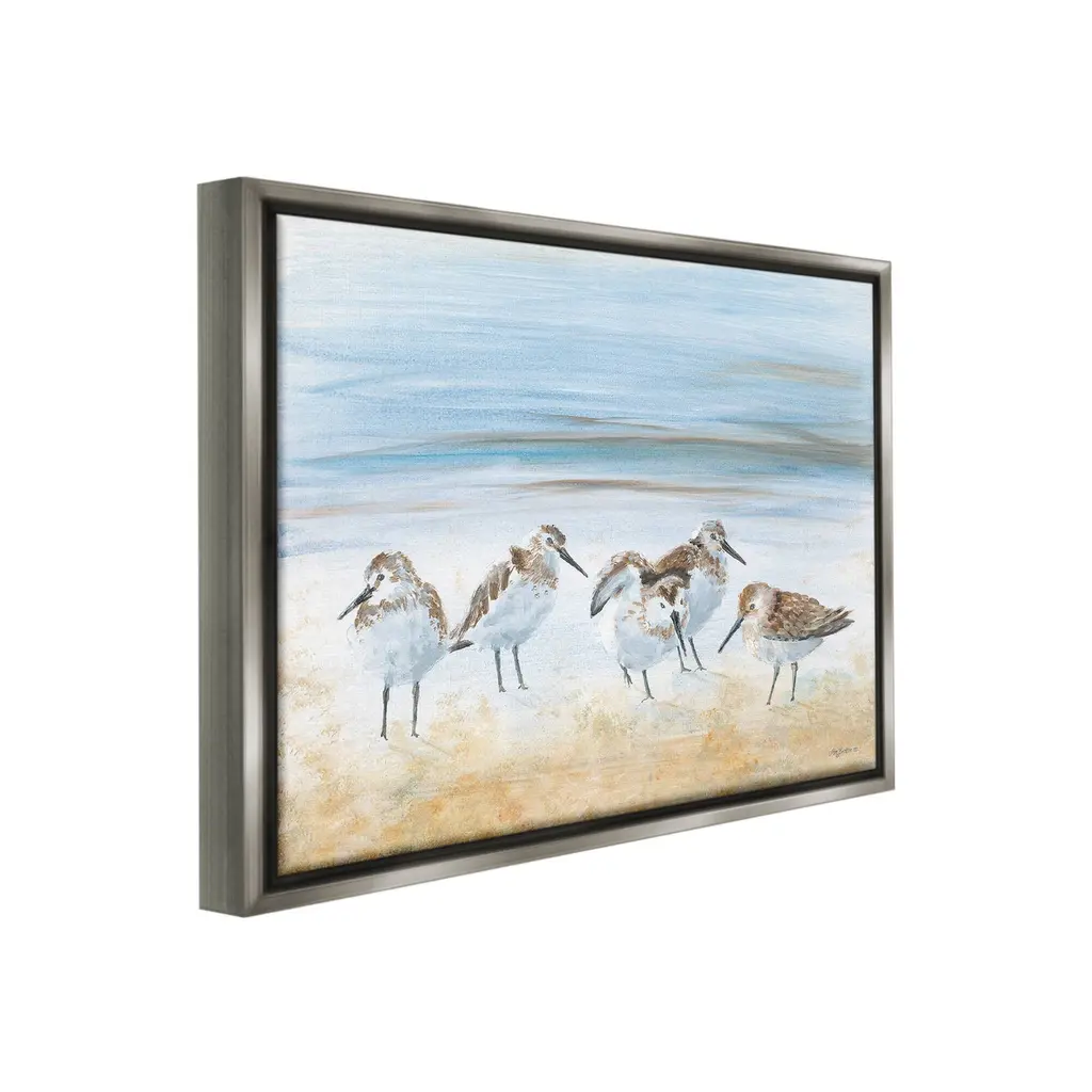 Elevate your home or office to the next level with Stupell Framed Floating Canvas Wall Art. Our premium hand-stretched canvas is mounted securely into a sturdy lightweight frame. The museum-style gap between the wrapped canvas and the box frame gives the illusion of floating artwork. Stupell Wall Art is made in the USA.Features: Dimensions: 21 x 1.7 x 17 Frame, 20 x 1.5 x 16 Canvas ArtFloating Frame Canvas Products are available in sizes 21"x17" and 31"x25". All Floating Frame Canvas Products have a 1.7" Depth.Wall Art is Ready to Hang with Hardware Free Hanging. No Installation required. For Easy Set Up Lean or Layer Artwork on Shelf or Against Wall. Artwork is Permently Fixed into the Frame.Our elevated 1.7" Thick Floating Frame is the perfect complement to our canvas style Wall Art. We use only the highest quality inks in house with industry leading printing solutions. Canvas is hand stretched over a durable wood foundation and then mounted securly into a Modern Box Frame. Made in the USA.Artwork Relates To: Animal, Beak, Bird, Beach, Abstract, Summer, Shore, Ocean, Sea, SandpiperDesign by Pam Britton