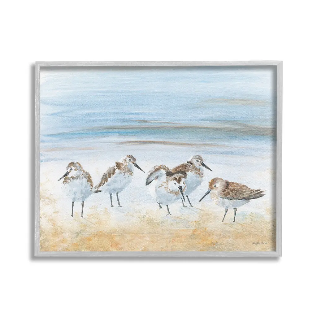 Stupell Summer Sandpipers On Shore Framed Floater Canvas Wall Art Design By Pam Britton - 31 X 25 - Grey