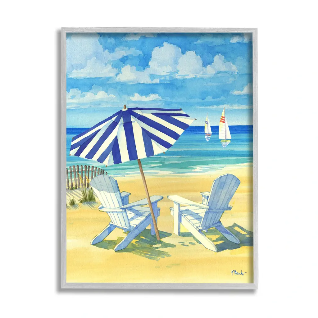 Stupell Summer Shade Beach Scene Framed Giclee Art Design By Paul Brent - 11 X 14 - Grey