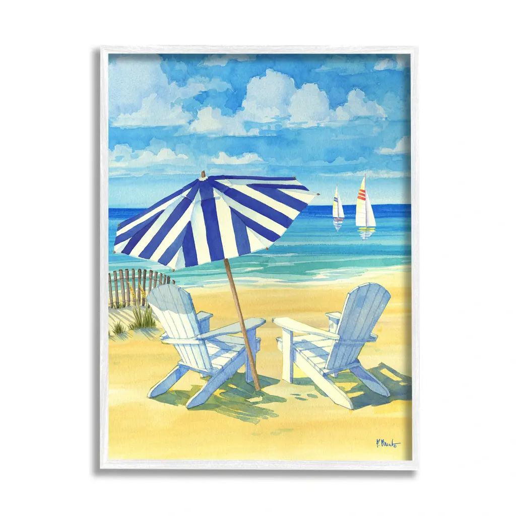 Add dimension to any room with our textured Framed Giclee Artwork. Our framed artwork is securely mounted into a 1.5-inch thick wood grain frame and ready to hang. Frames are available in three alluring styles: black, gray farmhouse and white. In addition, you should check out our oversized options if you want a statement piece. Stupell Wall Art is made in the USA.Features: Dimensions: 11 x 1.5 x 14 FramedFramed Giclee Sizes Include Standard: 11 x 1.5 x 14 Large: 16 x 1.5 x 20 Oversized: 24 x 1.5 x 30Wall Art is Ready to Hang with Hardware Free Hanging. No installation required. For Easy Set Up Lean or Layer Artwork on Shelf or Against Wall.Our giclée prints are carefully mounted on a durable MDF backing, and then perfectly finished in a 1.5 inch thick woodgrain frame. Mounted frame colors include black, gray farmhouse and white. Made In USA.Artwork Relates To: Chair, Painting, Armchair, Nature, Outdoors, Sea, Water, Beach, Shore, SailboatDesign by Paul Brent