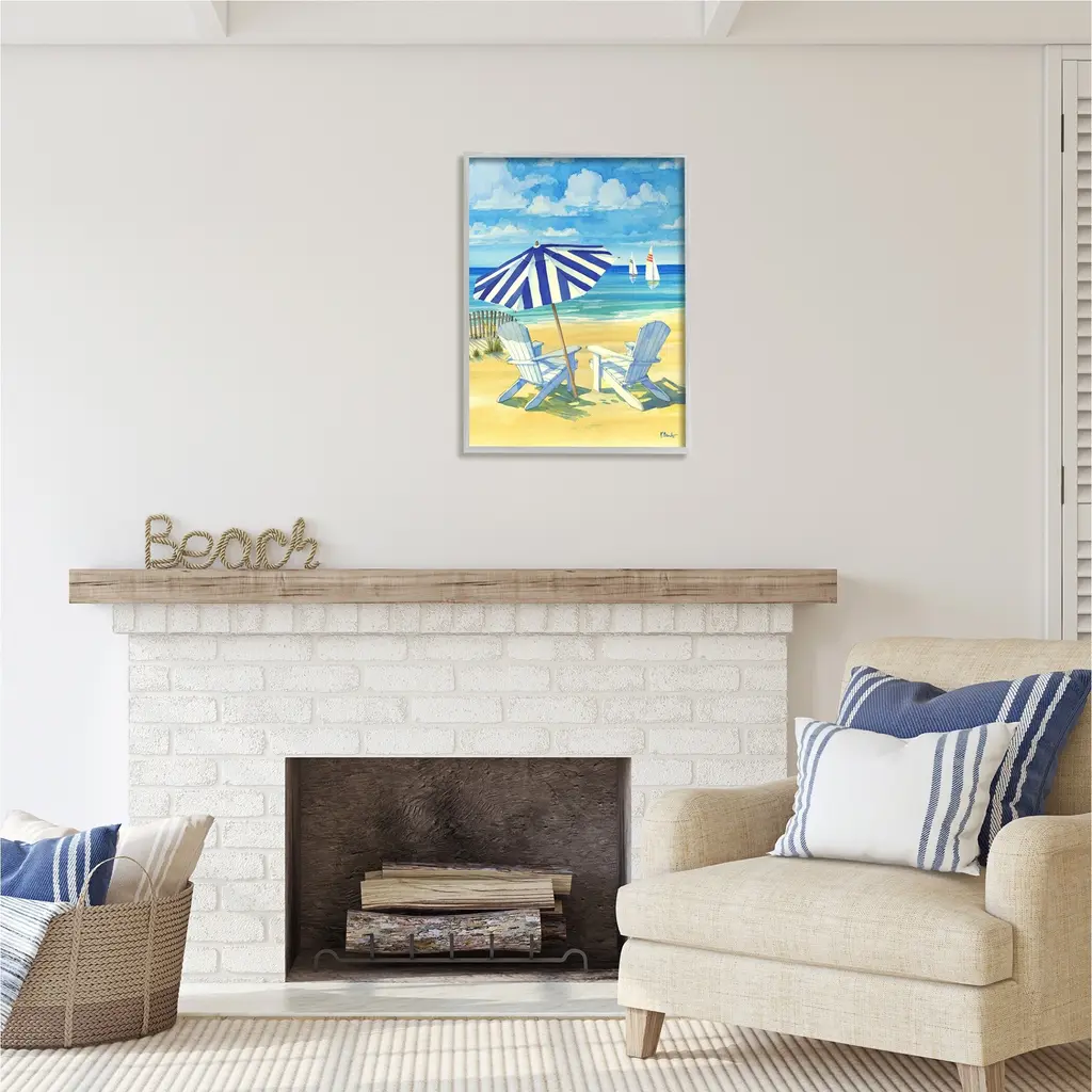 Add dimension to any room with our textured Framed Giclee Artwork. Our framed artwork is securely mounted into a 1.5-inch thick wood grain frame and ready to hang. Frames are available in three alluring styles: black, gray farmhouse and white. In addition, you should check out our oversized options if you want a statement piece. Stupell Wall Art is made in the USA.Features: Dimensions: 11 x 1.5 x 14 FramedFramed Giclee Sizes Include Standard: 11 x 1.5 x 14 Large: 16 x 1.5 x 20 Oversized: 24 x 1.5 x 30Wall Art is Ready to Hang with Hardware Free Hanging. No installation required. For Easy Set Up Lean or Layer Artwork on Shelf or Against Wall.Our giclée prints are carefully mounted on a durable MDF backing, and then perfectly finished in a 1.5 inch thick woodgrain frame. Mounted frame colors include black, gray farmhouse and white. Made In USA.Artwork Relates To: Chair, Painting, Armchair, Nature, Outdoors, Sea, Water, Beach, Shore, SailboatDesign by Paul Brent