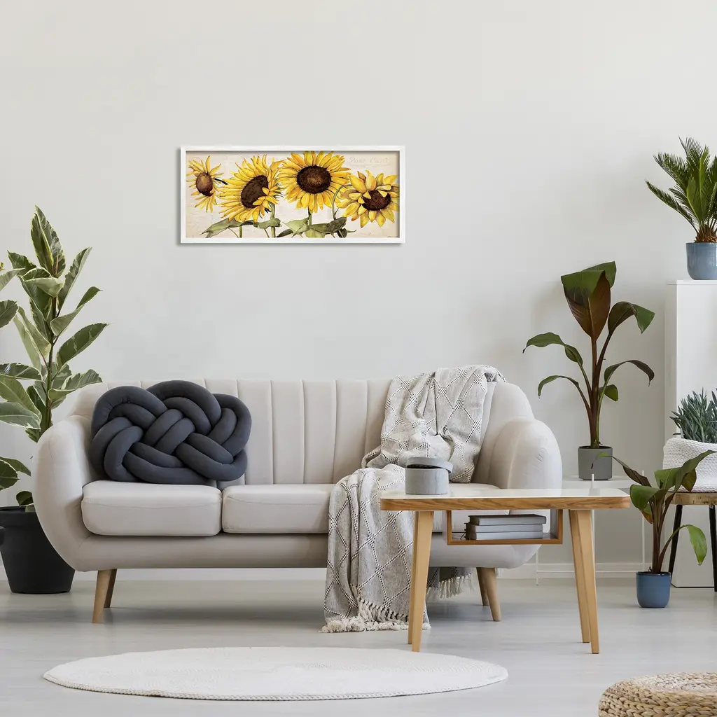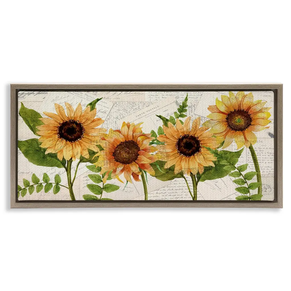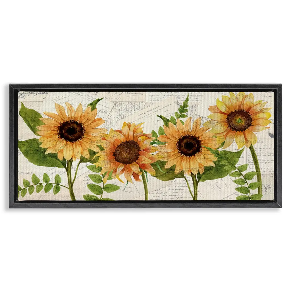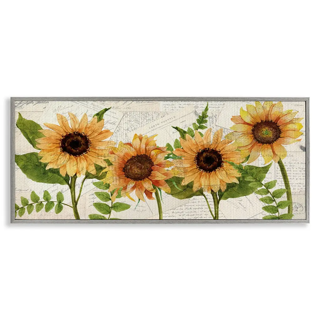 Stupell Summer Sunflower Florals Vintage Postcard Text Pattern Framed Wall Art - Yellow - 30 X 13 - White