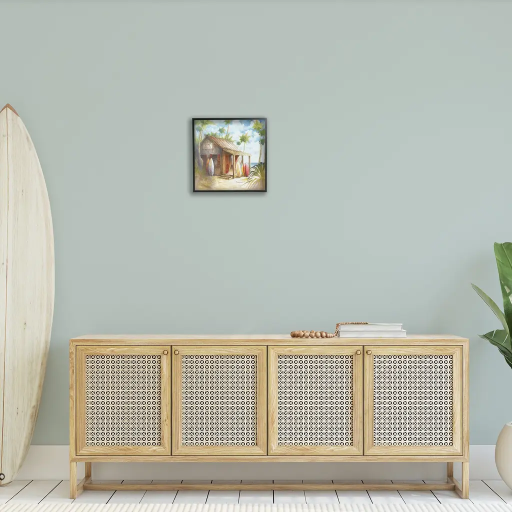 Add dimension to any room with our textured Framed Giclee Artwork. Our framed artwork is securely mounted into a 1.5-inch thick wood grain frame and ready to hang. Frames are available in three alluring styles: black, gray farmhouse and white. In addition, you should check out our oversized options if you want a statement piece. Stupell Wall Art is made in the USA.Features: Dimensions: 12 x 1.5 x 12 FramedFramed Giclee Product Sizes Include 12"x12", 17"x17", and 24"x24". Framed Giclee Products have a 1.5" Depth. Wall Art is Ready to Hang with Hardware Free Hanging. No installation required. For Easy Set Up Lean or Layer Artwork on Shelf or Against Wall.Our giclée prints are carefully mounted on a durable MDF backing, and then perfectly finished in a 1.5 inch thick woodgrain frame. Mounted frame colors include black, gray farmhouse and white. Made In USA.Artwork Relates To: Beach, Summer, Shore, Ocean, Sea, Tropical, Palm Tree, Surfboard, ShackDesign by Cloverfield & Co.