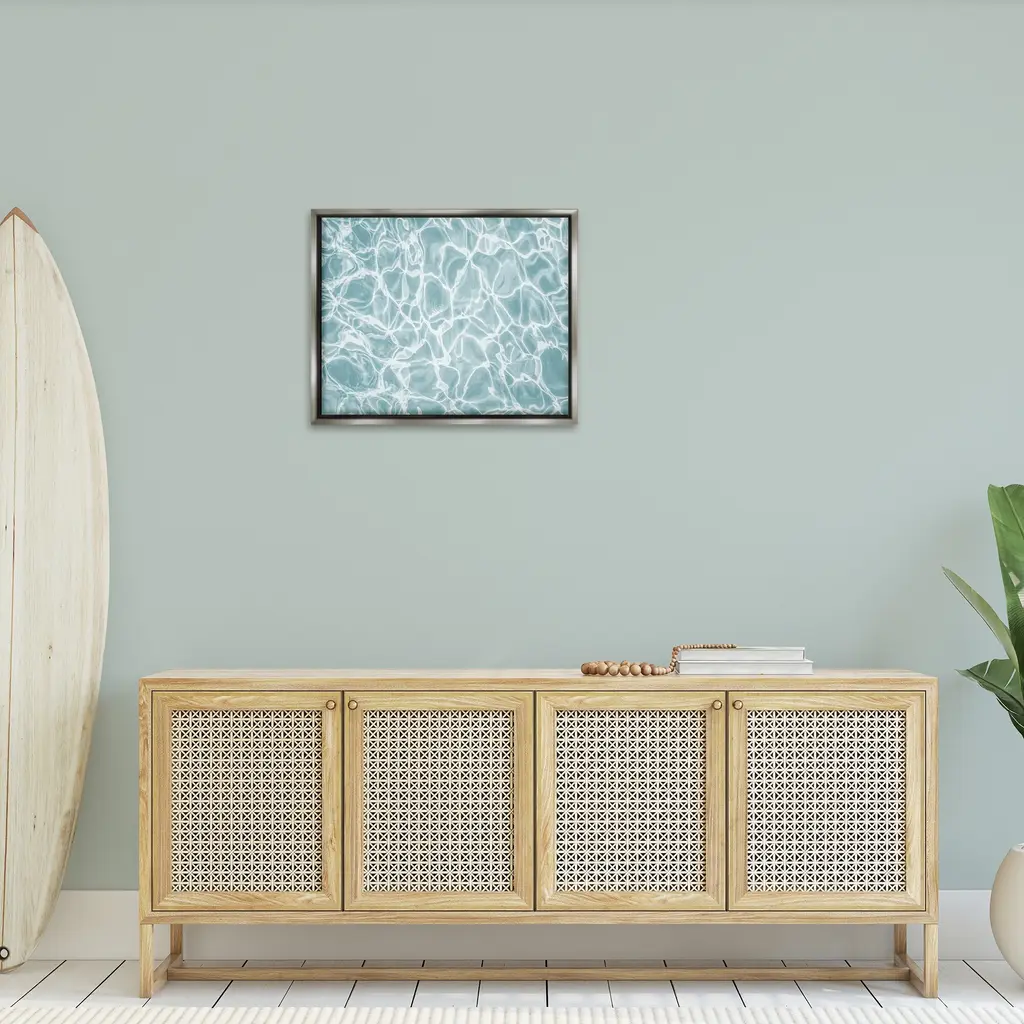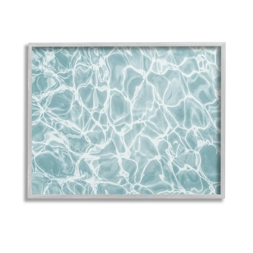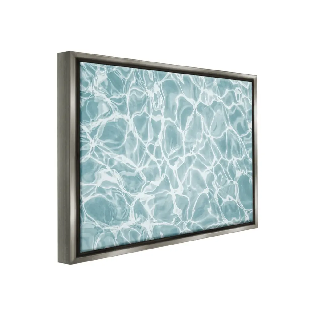 Elevate your home or office to the next level with Stupell Framed Floating Canvas Wall Art. Our premium hand-stretched canvas is mounted securely into a sturdy lightweight frame. The museum-style gap between the wrapped canvas and the box frame gives the illusion of floating artwork. Stupell Wall Art is made in the USA.Features: Dimensions: 21 x 1.7 x 17 Frame, 20 x 1.5 x 16 Canvas ArtFloating Frame Canvas Products are available in sizes 21"x17" and 31"x25". All Floating Frame Canvas Products have a 1.7" Depth.Wall Art is Ready to Hang with Hardware Free Hanging. No Installation required. For Easy Set Up Lean or Layer Artwork on Shelf or Against Wall. Artwork is Permently Fixed into the Frame.Our elevated 1.7" Thick Floating Frame is the perfect complement to our canvas style Wall Art. We use only the highest quality inks in house with industry leading printing solutions. Canvas is hand stretched over a durable wood foundation and then mounted securly into a Modern Box Frame. Made in the USA.Artwork Relates To: Water, Turquoise, Pool, Pattern, Sea, Ripple, Beach, Ocean, SummerDesign by Sisi and Seb