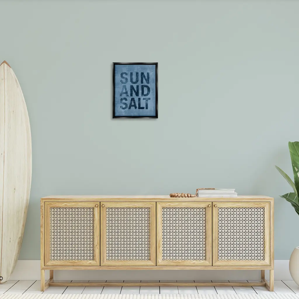 Elevate your home or office to the next level with Stupell Framed Floating Canvas Wall Art. Our premium hand-stretched canvas is mounted securely into a sturdy lightweight frame. The museum-style gap between the wrapped canvas and the box frame gives the illusion of floating artwork. Stupell Wall Art is made in the USA.Features: Dimensions: 17 x 1.7 x 21 Frame, 16 x 1.5 x 20 Canvas ArtFloating Frame Canvas Products are available in sizes 17"x21" and 25"x31". All Floating Frame Canvas Products have a 1.7" Depth.Wall Art is Ready to Hang with Hardware Free Hanging. No Installation required. For Easy Set Up Lean or Layer Artwork on Shelf or Against Wall. Artwork is Permently Fixed into the Frame.Our elevated 1.7" Thick Floating Frame is the perfect complement to our canvas style Wall Art. We use only the highest quality inks in house with industry leading printing solutions. Canvas is hand stretched over a durable wood foundation and then mounted securly into a Modern Box Frame. Made in the USA.Artwork Relates To: Phrase, Nautical, Summer, Beach, Lake, Sun and SaltDesign by Victoria Barnes
