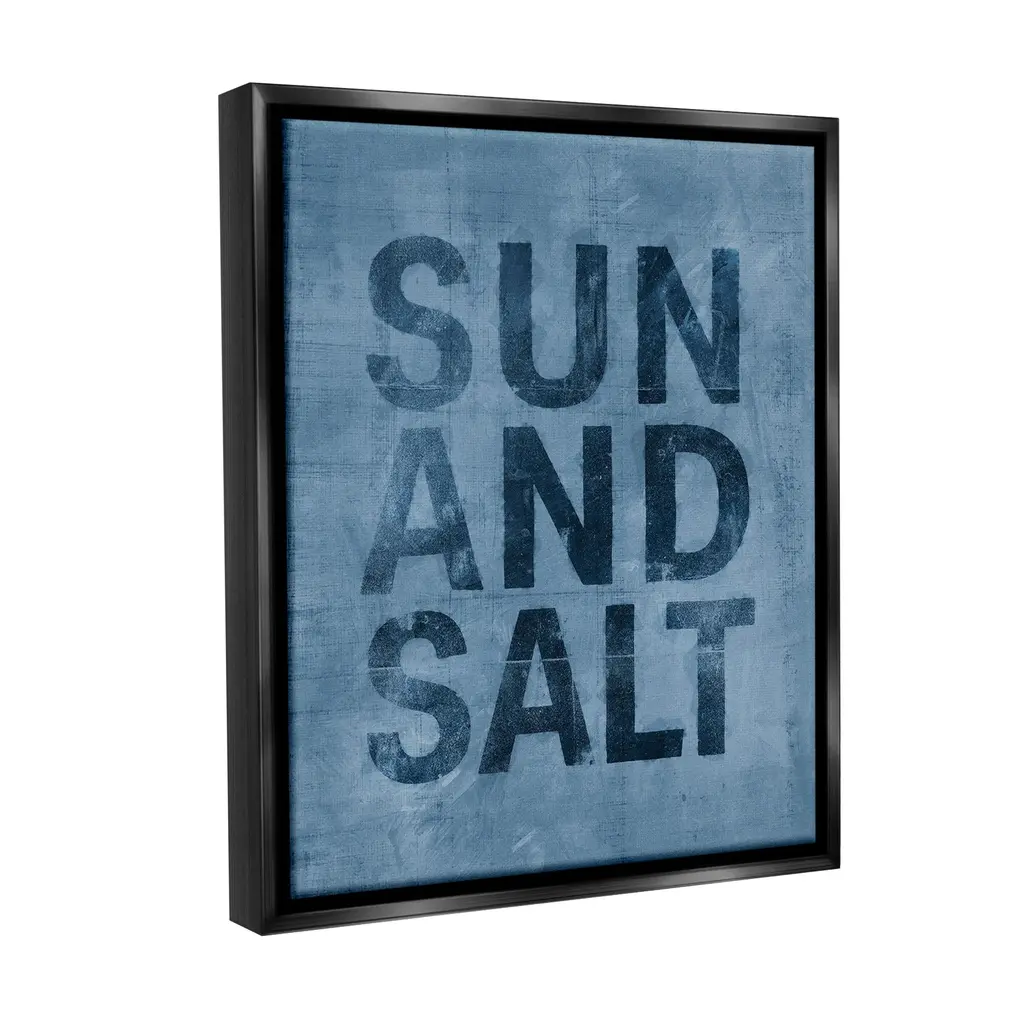 Elevate your home or office to the next level with Stupell Framed Floating Canvas Wall Art. Our premium hand-stretched canvas is mounted securely into a sturdy lightweight frame. The museum-style gap between the wrapped canvas and the box frame gives the illusion of floating artwork. Stupell Wall Art is made in the USA.Features: Dimensions: 17 x 1.7 x 21 Frame, 16 x 1.5 x 20 Canvas ArtFloating Frame Canvas Products are available in sizes 17"x21" and 25"x31". All Floating Frame Canvas Products have a 1.7" Depth.Wall Art is Ready to Hang with Hardware Free Hanging. No Installation required. For Easy Set Up Lean or Layer Artwork on Shelf or Against Wall. Artwork is Permently Fixed into the Frame.Our elevated 1.7" Thick Floating Frame is the perfect complement to our canvas style Wall Art. We use only the highest quality inks in house with industry leading printing solutions. Canvas is hand stretched over a durable wood foundation and then mounted securly into a Modern Box Frame. Made in the USA.Artwork Relates To: Phrase, Nautical, Summer, Beach, Lake, Sun and SaltDesign by Victoria Barnes