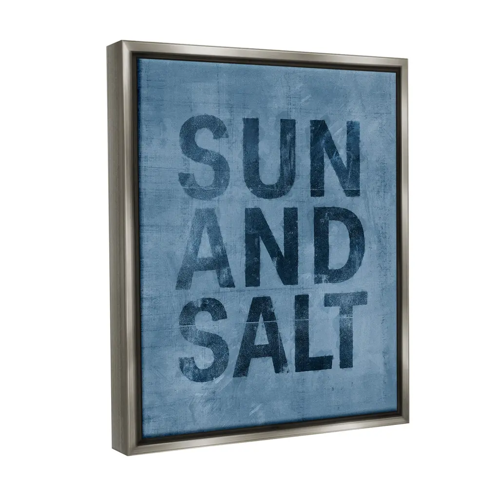 Elevate your home or office to the next level with Stupell Framed Floating Canvas Wall Art. Our premium hand-stretched canvas is mounted securely into a sturdy lightweight frame. The museum-style gap between the wrapped canvas and the box frame gives the illusion of floating artwork. Stupell Wall Art is made in the USA.Features: Dimensions: 17 x 1.7 x 21 Frame, 16 x 1.5 x 20 Canvas ArtFloating Frame Canvas Products are available in sizes 17"x21" and 25"x31". All Floating Frame Canvas Products have a 1.7" Depth.Wall Art is Ready to Hang with Hardware Free Hanging. No Installation required. For Easy Set Up Lean or Layer Artwork on Shelf or Against Wall. Artwork is Permently Fixed into the Frame.Our elevated 1.7" Thick Floating Frame is the perfect complement to our canvas style Wall Art. We use only the highest quality inks in house with industry leading printing solutions. Canvas is hand stretched over a durable wood foundation and then mounted securly into a Modern Box Frame. Made in the USA.Artwork Relates To: Phrase, Nautical, Summer, Beach, Lake, Sun and SaltDesign by Victoria Barnes