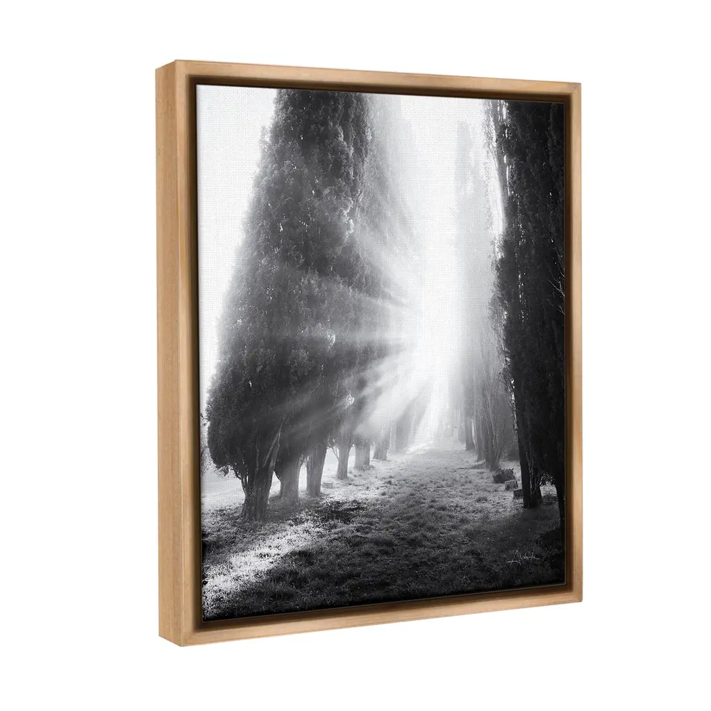 Elevate your home or office to the next level with Stupell Framed Floating Canvas Wall Art. Our premium hand-stretched canvas is mounted securely into a sturdy lightweight frame. The museum-style gap between the wrapped canvas and the box frame gives the illusion of floating artwork. Stupell Wall Art is made in the USA.Features: Dimensions: 17 x 1.7 x 21 Frame, 16 x 1.5 x 20 Canvas ArtFloating Frame Canvas Products are available in sizes 17"x21" and 25"x31". All Floating Frame Canvas Products have a 1.7" Depth.Wall Art is Ready to Hang with Hardware Free Hanging. No Installation required. For Easy Set Up Lean or Layer Artwork on Shelf or Against Wall. Artwork is Permently Fixed into the Frame.Our elevated 1.7" Thick Floating Frame is the perfect complement to our canvas style Wall Art. We use only the highest quality inks in house with industry leading printing solutions. Canvas is hand stretched over a durable wood foundation and then mounted securly into a Modern Box Frame. Made in the USA.Artwork Relates To: Sunlight, Grove, Nature, Tree, Woodland, Hedge, Monochrome, PhotographyDesign by Aledanda