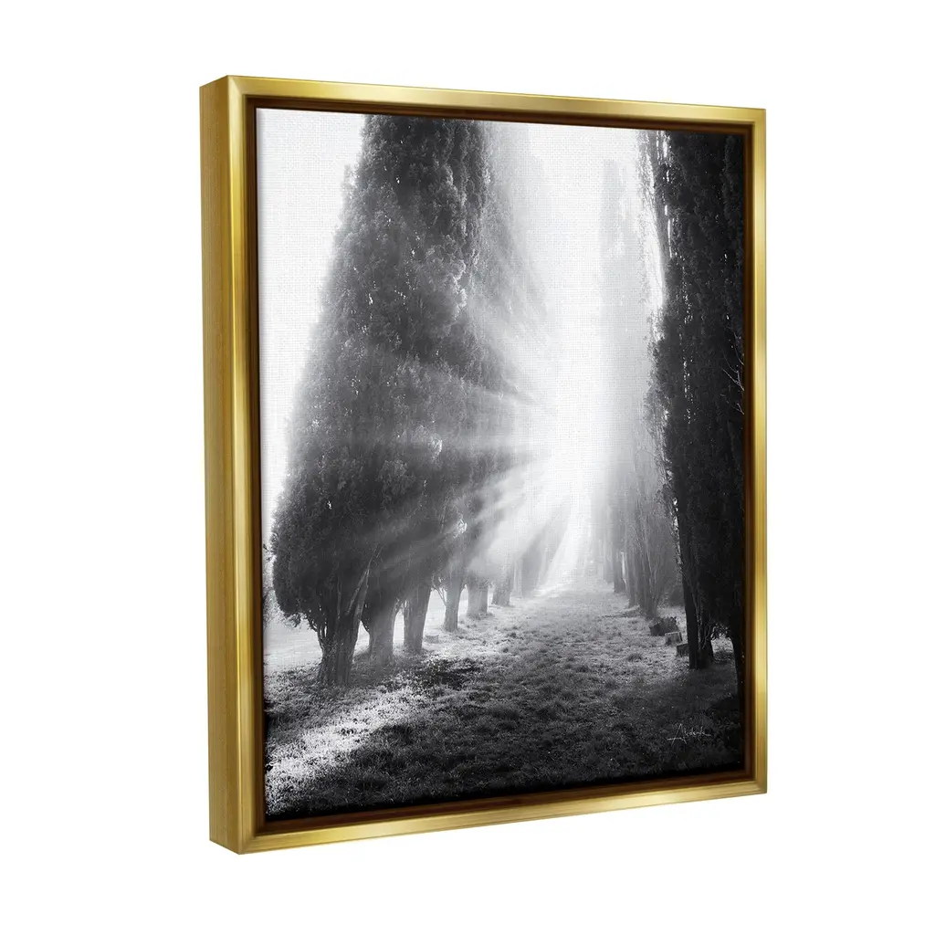 Elevate your home or office to the next level with Stupell Framed Floating Canvas Wall Art. Our premium hand-stretched canvas is mounted securely into a sturdy lightweight frame. The museum-style gap between the wrapped canvas and the box frame gives the illusion of floating artwork. Stupell Wall Art is made in the USA.Features: Dimensions: 17 x 1.7 x 21 Frame, 16 x 1.5 x 20 Canvas ArtFloating Frame Canvas Products are available in sizes 17"x21" and 25"x31". All Floating Frame Canvas Products have a 1.7" Depth.Wall Art is Ready to Hang with Hardware Free Hanging. No Installation required. For Easy Set Up Lean or Layer Artwork on Shelf or Against Wall. Artwork is Permently Fixed into the Frame.Our elevated 1.7" Thick Floating Frame is the perfect complement to our canvas style Wall Art. We use only the highest quality inks in house with industry leading printing solutions. Canvas is hand stretched over a durable wood foundation and then mounted securly into a Modern Box Frame. Made in the USA.Artwork Relates To: Sunlight, Grove, Nature, Tree, Woodland, Hedge, Monochrome, PhotographyDesign by Aledanda