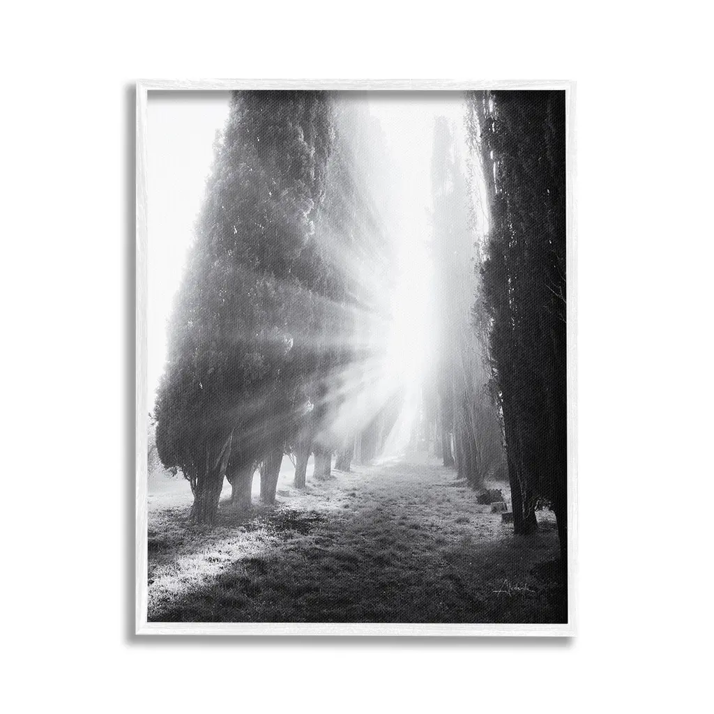 Add dimension to any room with our textured Framed Giclee Artwork. Our framed artwork is securely mounted into a 1.5-inch thick wood grain frame and ready to hang. Frames are available in three alluring styles: black, gray farmhouse and white. In addition, you should check out our oversized options if you want a statement piece. Stupell Wall Art is made in the USA.Features: Dimensions: 11 x 1.5 x 14 FramedFramed Giclee Products are available in the sizes 11"x14", 16"x20" or 24"x30". All Framed Giclee Products have a 1.5" Depth. Wall Art is Ready to Hang with Hardware Free Hanging. No installation required. For Easy Set Up Lean or Layer Artwork on Shelf or Against Wall.Our giclée prints are carefully mounted on a durable MDF backing, and then perfectly finished in a 1.5 inch thick woodgrain frame. Mounted frame colors include black, gray farmhouse and white. Made In USA.Artwork Relates To: Sunlight, Grove, Nature, Tree, Woodland, Hedge, Monochrome, PhotographyDesign by Aledanda