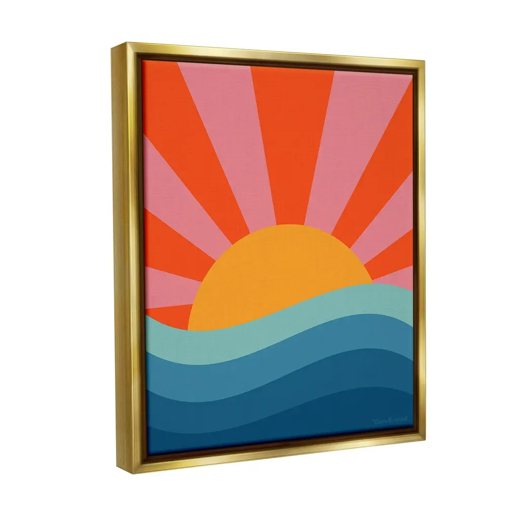 Elevate your home or office to the next level with Stupell Framed Floating Canvas Wall Art. Our premium hand-stretched canvas is mounted securely into a sturdy lightweight frame. The museum-style gap between the wrapped canvas and the box frame gives the illusion of floating artwork. Stupell Wall Art is made in the USA.Features: Dimensions: 17 x 1.7 x 21 Frame, 16 x 1.5 x 20 Canvas ArtFloating Frame Canvas Products are available in sizes 17"x21" and 25"x31". All Floating Frame Canvas Products have a 1.7" Depth.Wall Art is Ready to Hang with Hardware Free Hanging. No Installation required. For Easy Set Up Lean or Layer Artwork on Shelf or Against Wall. Artwork is Permently Fixed into the Frame.Our elevated 1.7" Thick Floating Frame is the perfect complement to our canvas style Wall Art. We use only the highest quality inks in house with industry leading printing solutions. Canvas is hand stretched over a durable wood foundation and then mounted securly into a Modern Box Frame. Made in the USA.Artwork Relates To: Abstract, Modern, Landscape, Pattern, Stripes, Sun, Sea, Ocean, WavesDesign by Carrie Cantwell
