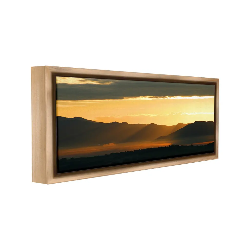 Elevate your home or office to the next level with Stupell Framed Floating Canvas Wall Art. Our premium hand-stretched canvas is mounted securely into a sturdy lightweight frame. The museum-style gap between the wrapped canvas and the box frame gives the illusion of floating artwork. Stupell Wall Art is made in the USA.Features: Dimensions: 25 x 1.7 x 11 Frame, 24 x 1.5 x 10 Canvas ArtFloating Frame Canvas Products are available in sizes 25"x11" and 31"x14". All Floating Frame Canvas Products have a 1.7" Depth.Wall Art is Ready to Hang with Hardware Free Hanging. No Installation required. For Easy Set Up Lean or Layer Artwork on Shelf or Against Wall. Artwork is Permently Fixed into the Frame.Our elevated 1.7" Thick Floating Frame is the perfect complement to our canvas style Wall Art. We use only the highest quality inks in house with industry leading printing solutions. Canvas is hand stretched over a durable wood foundation and then mounted securly into a Modern Box Frame. Made in the USA.Artwork Relates To: Nature, Sky, Sunlight, Sunrise, Scenery, Landscape, Sunset, Mountain, Horizon, Sun RaysDesign by Noah Bay