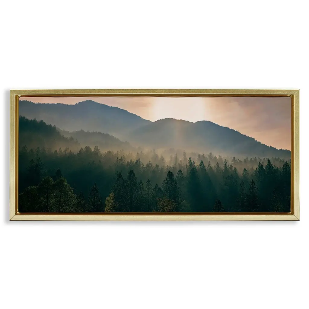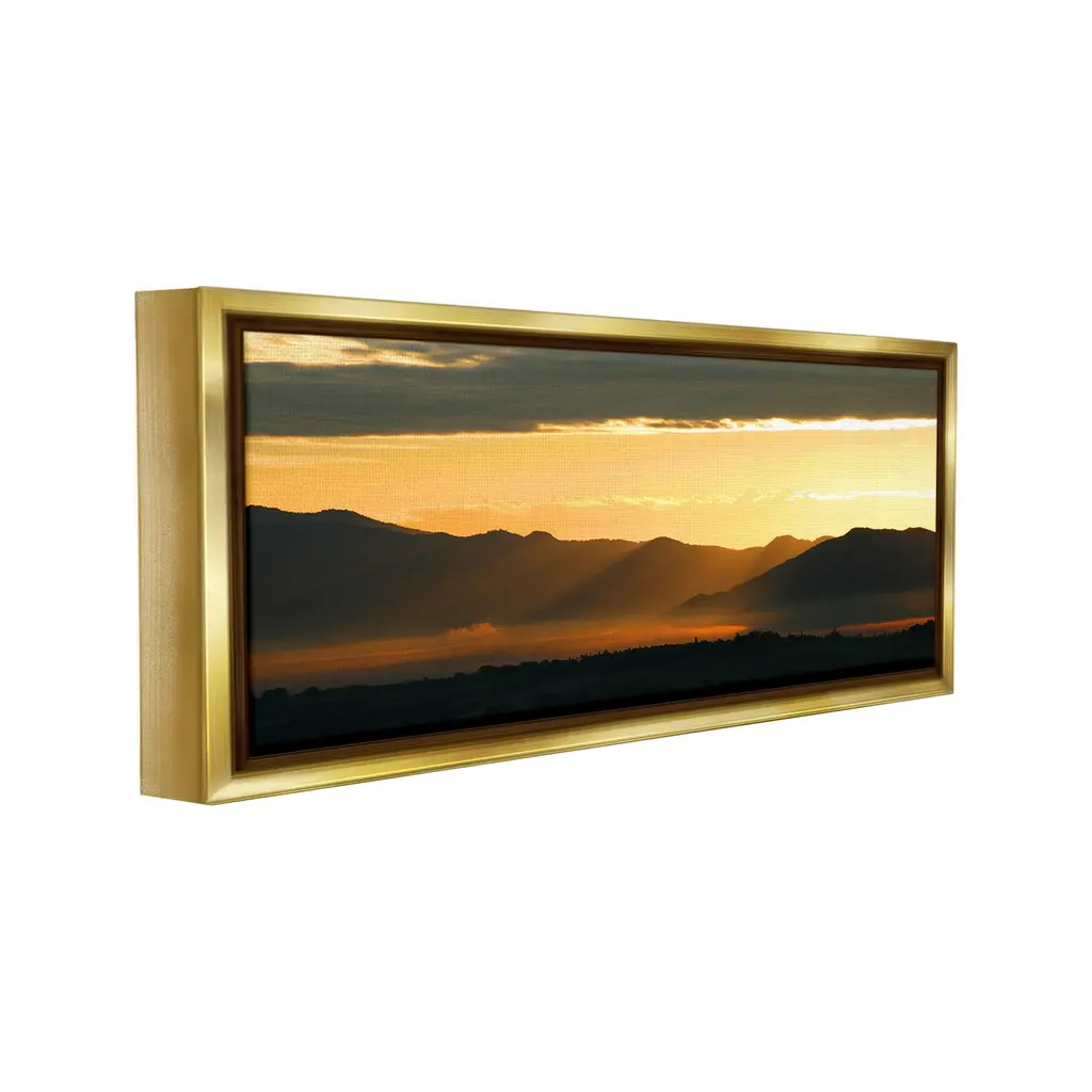 Stupell Sun Rays Over Mountains Framed Floater Canvas Wall Art Design By Noah Bay - 25 X 11 - Gold
