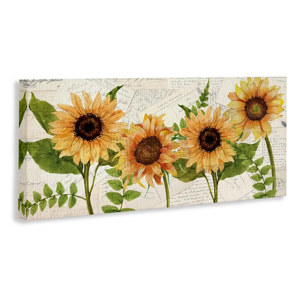 Stupell Sunflower And Vintage European Postcard Collage Canvas Wall Art - Multi-Color - 13 X 30