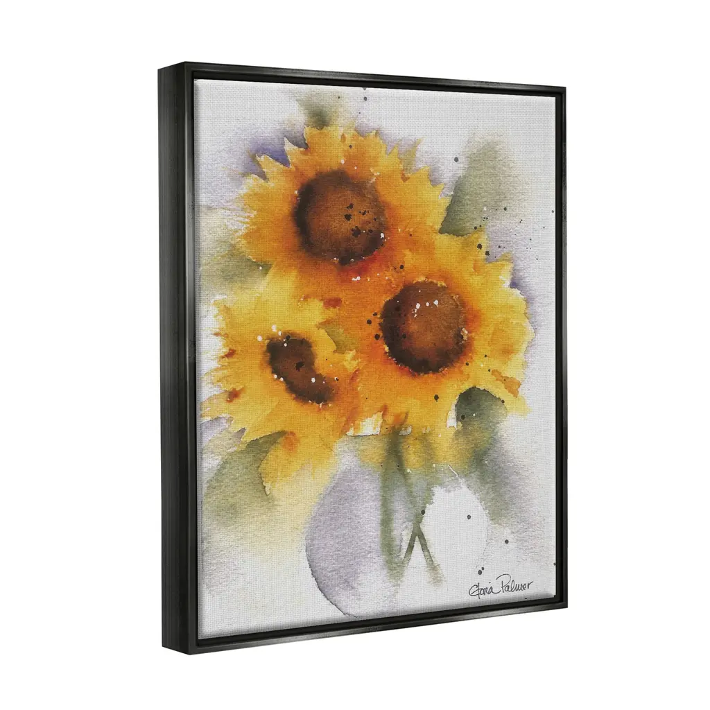 Elevate your home or office to the next level with Stupell Framed Floating Canvas Wall Art. Our premium hand-stretched canvas is mounted securely into a sturdy lightweight frame. The museum-style gap between the wrapped canvas and the box frame gives the illusion of floating artwork. Stupell Wall Art is made in the USA.Features: Dimensions: 17 x 1.7 x 21 Frame, 16 x 1.5 x 20 Canvas ArtFloating Frame Sizes Include Standard: 17 x 1.7 x 21 Oversized: 25 x 1.7 x 31Wall Art is Ready to Hang - No Installation or Hardware Needed. For Easy Set Up Lean or Layer Artwork on Shelf or Against Wall.Our elevated 1.7" Thick Floating Frame is the perfect complement to our canvas style Wall Art. We use only the highest quality inks in house with industry leading printing solutions. Canvas is hand stretched over a durable wood foundation and then mounted securly into a Modern Box Frame. Made in the USA.Artwork Relates To: Flower, Plant, Sunflower, Painting, PetalDesign by Gloria Palmer