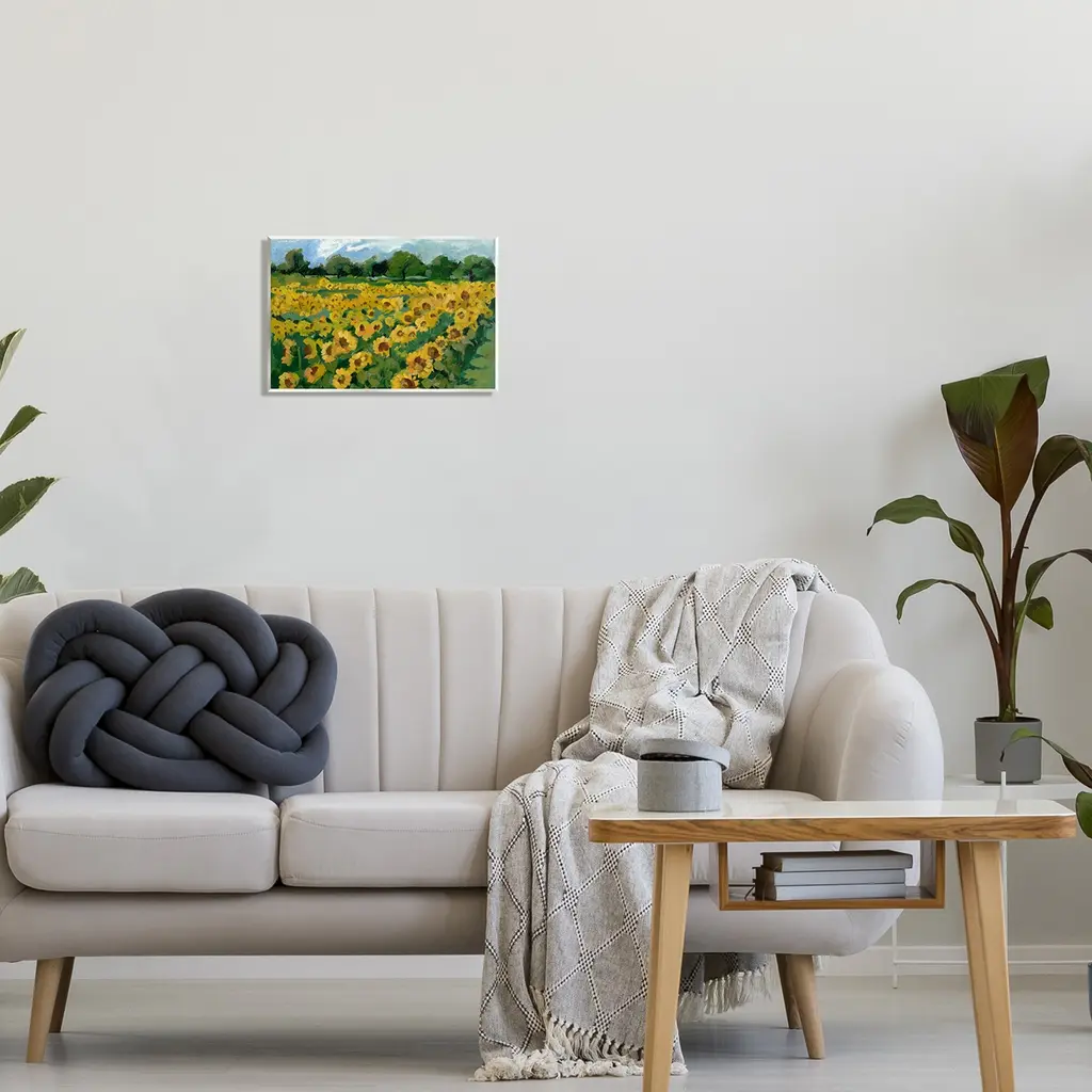 Our wall plaques start as high-quality lithograph prints mounted on durable 0.5-inch thick MDF wood. Each piece is hand finished and comes with a fresh layer of white foil on the sides to give it a crisp, clean look. Plaques arrive ready to hang without installation and come with removable plastic corners to keep them from damage in transit. Wall Art is made in the USA.Features: Dimensions: 15 x 0.5 x 10 InchesWall Plaque Sizes Include Standard: 15 x 0.5 x 10 Oversized: 19 x 0.5 x 13Wall Art is Ready to Hang with Hardware Free Hanging. No installation required. For Easy Set Up Lean or Layer Artwork on Shelf or Against Wall.All of our wall plaques start off as high quality lithograph prints that are then mounted on durable 0.5 inch thick MDF wood. Each piece is hand finished and comes with a fresh layer of foil on the sides to give it a crisp clean look. Made In USA.Artwork Relates To: Painting, Field, Flower, Plant, Sunflower, Nature, Grassland, Countryside, Meadow, Rural, Landscape, Country, FarmhouseDesign by Bley Hack