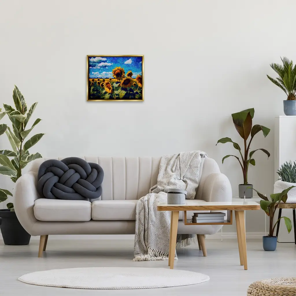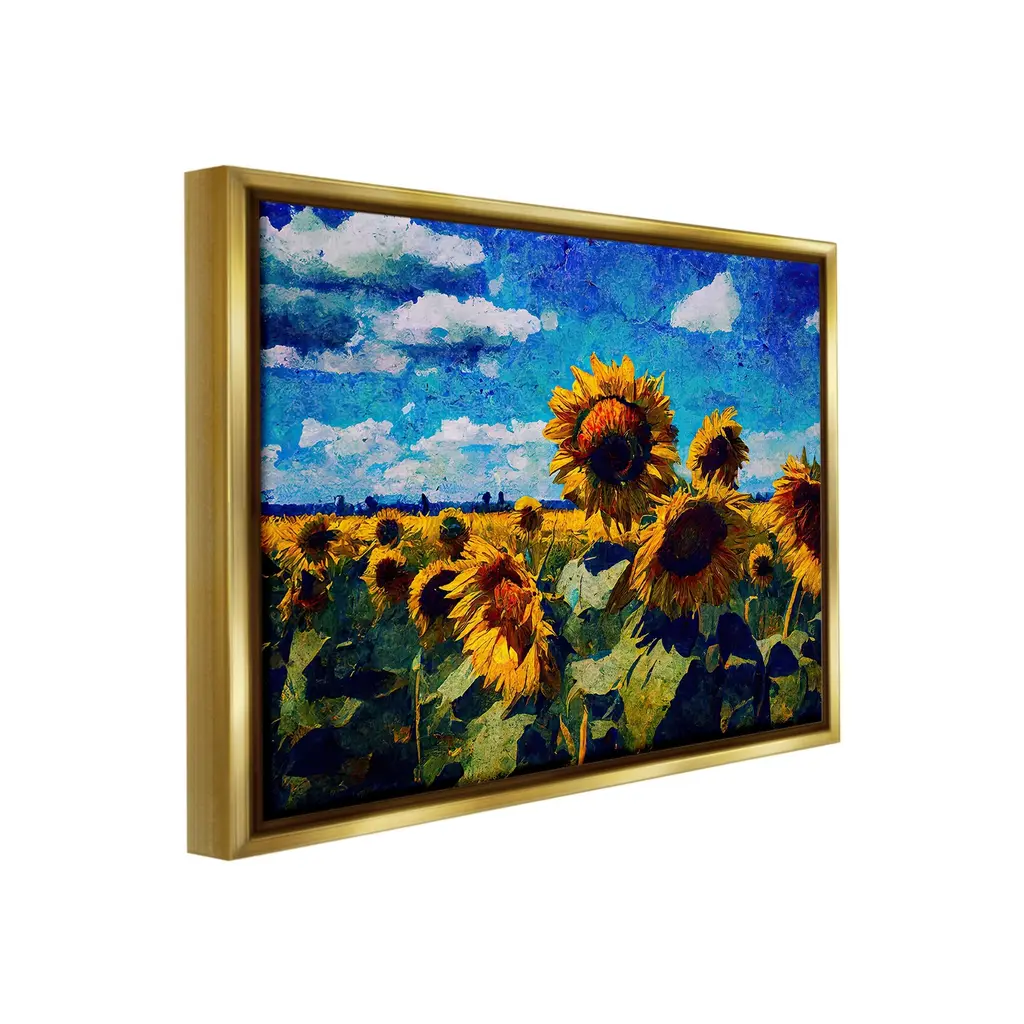 Elevate your home or office to the next level with Stupell Framed Floating Canvas Wall Art. Our premium hand-stretched canvas is mounted securely into a sturdy lightweight frame. The museum-style gap between the wrapped canvas and the box frame gives the illusion of floating artwork. Stupell Wall Art is made in the USA.Features: Dimensions: 21 x 1.7 x 17 Frame, 20 x 1.5 x 16 Canvas ArtFloating Frame Canvas Products are available in sizes 21"x17" and 31"x25". All Floating Frame Canvas Products have a 1.7" Depth.Wall Art is Ready to Hang with Hardware Free Hanging. No Installation required. For Easy Set Up Lean or Layer Artwork on Shelf or Against Wall. Artwork is Permently Fixed into the Frame.Our elevated 1.7" Thick Floating Frame is the perfect complement to our canvas style Wall Art. We use only the highest quality inks in house with industry leading printing solutions. Canvas is hand stretched over a durable wood foundation and then mounted securly into a Modern Box Frame. Made in the USA.Artwork Relates To: Painting, Nature, Field, Landscape, Plant, Vegetation, Scenery, Meadow, Sunflower, Floral, Flower, CountryDesign by Gina Kelly