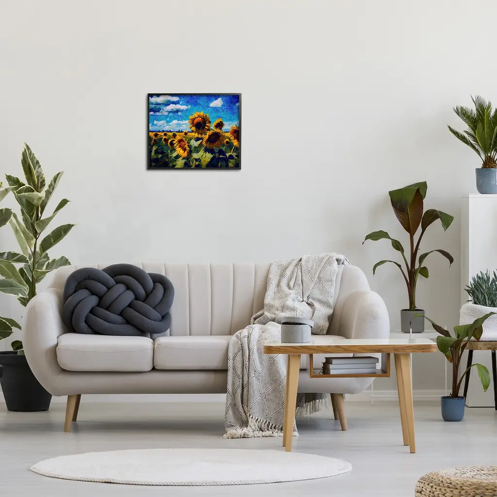 Add dimension to any room with our textured Framed Giclee Artwork. Our framed artwork is securely mounted into a 1.5-inch thick wood grain frame and ready to hang. Frames are available in three alluring styles: black, gray farmhouse and white. In addition, you should check out our oversized options if you want a statement piece. Stupell Wall Art is made in the USA.Features: Dimensions: 14 x 1.5 x 11 FramedFramed Giclee Products are available in the sizes 14"x11", 20"x16" or 30"x24". All Framed Giclee Products have a 1.5" Depth. Wall Art is Ready to Hang with Hardware Free Hanging. No installation required. For Easy Set Up Lean or Layer Artwork on Shelf or Against Wall.Our giclée prints are carefully mounted on a durable MDF backing, and then perfectly finished in a 1.5 inch thick woodgrain frame. Mounted frame colors include black, gray farmhouse and white. Made In USA.Artwork Relates To: Painting, Nature, Field, Landscape, Plant, Vegetation, Scenery, Meadow, Sunflower, Floral, Flower, CountryDesign by Gina Kelly