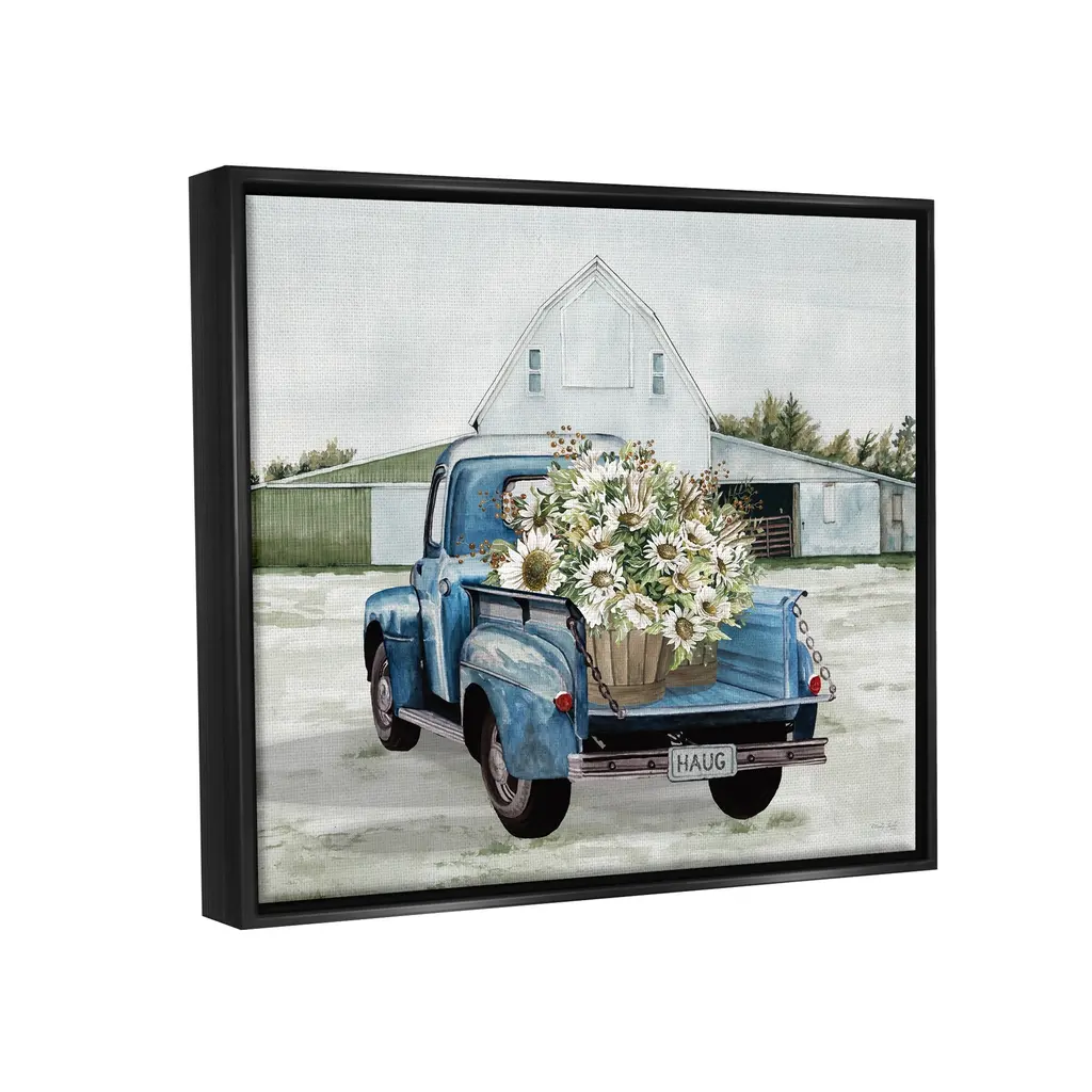 Stupell Sunflower Truck At Farm Framed Floater Canvas Wall Art Design By Cindy Jacobs - 21 X 17 - Black