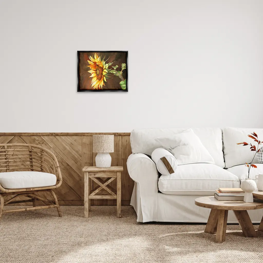 Elevate your home or office to the next level with Stupell Framed Floating Canvas Wall Art. Our premium hand-stretched canvas is mounted securely into a sturdy lightweight frame. The museum-style gap between the wrapped canvas and the box frame gives the illusion of floating artwork. Stupell Wall Art is made in the USA.Features: Dimensions: 21 x 1.7 x 17 Frame, 20 x 1.5 x 16 Canvas ArtFloating Frame Canvas Products are available in sizes 21"x17" and 31"x25". All Floating Frame Canvas Products have a 1.7" Depth.Wall Art is Ready to Hang with Hardware Free Hanging. No Installation required. For Easy Set Up Lean or Layer Artwork on Shelf or Against Wall. Artwork is Permently Fixed into the Frame.Our elevated 1.7" Thick Floating Frame is the perfect complement to our canvas style Wall Art. We use only the highest quality inks in house with industry leading printing solutions. Canvas is hand stretched over a durable wood foundation and then mounted securly into a Modern Box Frame. Made in the USA.Artwork Relates To: Flower, Plant, Petal, Botanical, Floral, Cottage, Country, SunflowerDesign by Christine Reichow