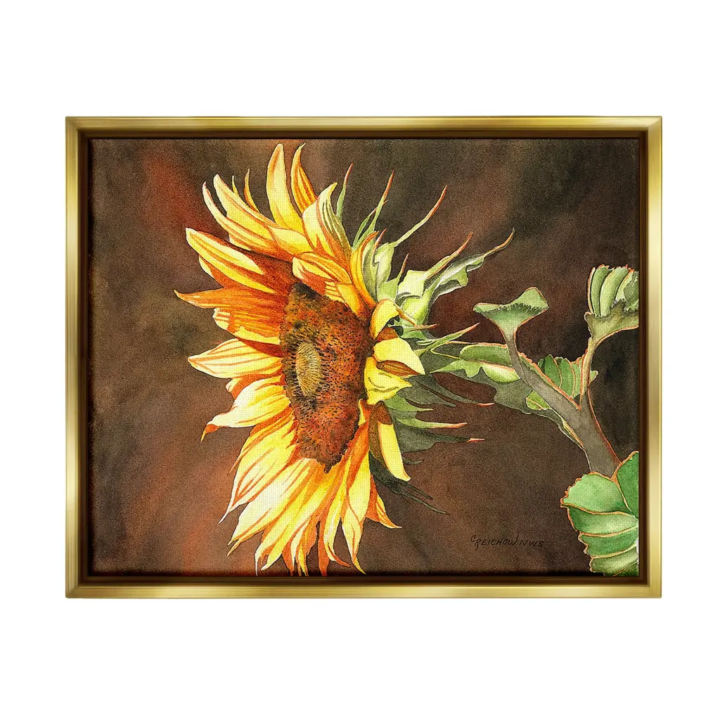 Elevate your home or office to the next level with Stupell Framed Floating Canvas Wall Art. Our premium hand-stretched canvas is mounted securely into a sturdy lightweight frame. The museum-style gap between the wrapped canvas and the box frame gives the illusion of floating artwork. Stupell Wall Art is made in the USA.Features: Dimensions: 21 x 1.7 x 17 Frame, 20 x 1.5 x 16 Canvas ArtFloating Frame Canvas Products are available in sizes 21"x17" and 31"x25". All Floating Frame Canvas Products have a 1.7" Depth.Wall Art is Ready to Hang with Hardware Free Hanging. No Installation required. For Easy Set Up Lean or Layer Artwork on Shelf or Against Wall. Artwork is Permently Fixed into the Frame.Our elevated 1.7" Thick Floating Frame is the perfect complement to our canvas style Wall Art. We use only the highest quality inks in house with industry leading printing solutions. Canvas is hand stretched over a durable wood foundation and then mounted securly into a Modern Box Frame. Made in the USA.Artwork Relates To: Flower, Plant, Petal, Botanical, Floral, Cottage, Country, SunflowerDesign by Christine Reichow