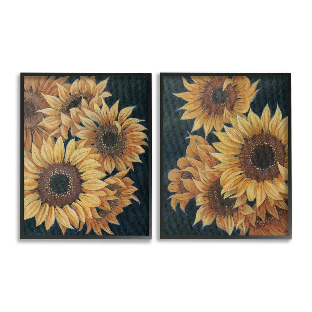 Elevate your home or office to the next level with Stupell Framed Floating Canvas Wall Art. Our premium hand-stretched canvas is mounted securely into a sturdy lightweight frame. The museum-style gap between the wrapped canvas and the box frame gives the illusion of floating artwork. Stupell Wall Art is made in the USA.Features: Dimensions: 2 Piece Set, Each Frame is 17 x 1.7 x 21Two Piece Floater Framed Canvas are available as 17x21 or 25x31 Panels. All Floater Frame Products have a 1.7" Depth.Wall Art is Ready to Hang with Hardware Free Hanging. No Installation required. For Easy Set Up Lean or Layer Artwork on Shelf or Against Wall. Artwork is Permently Fixed into the Frame.Our elevated 1.7" Thick Floating Frame is the perfect complement to our canvas style Wall Art. We use only the highest quality inks in house with industry leading printing solutions. Canvas is hand stretched over a durable wood foundation and then mounted securly into a Modern Box Frame. Made in the USA.Artwork Relates To: Flower, Plant, Sunflower, Pattern, Country, Traditional, BlossomDesign by Grace Popp