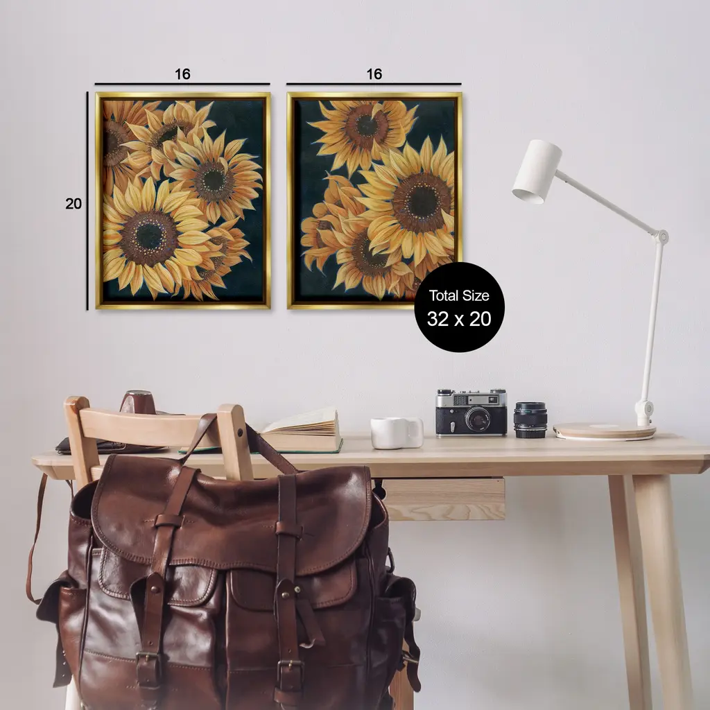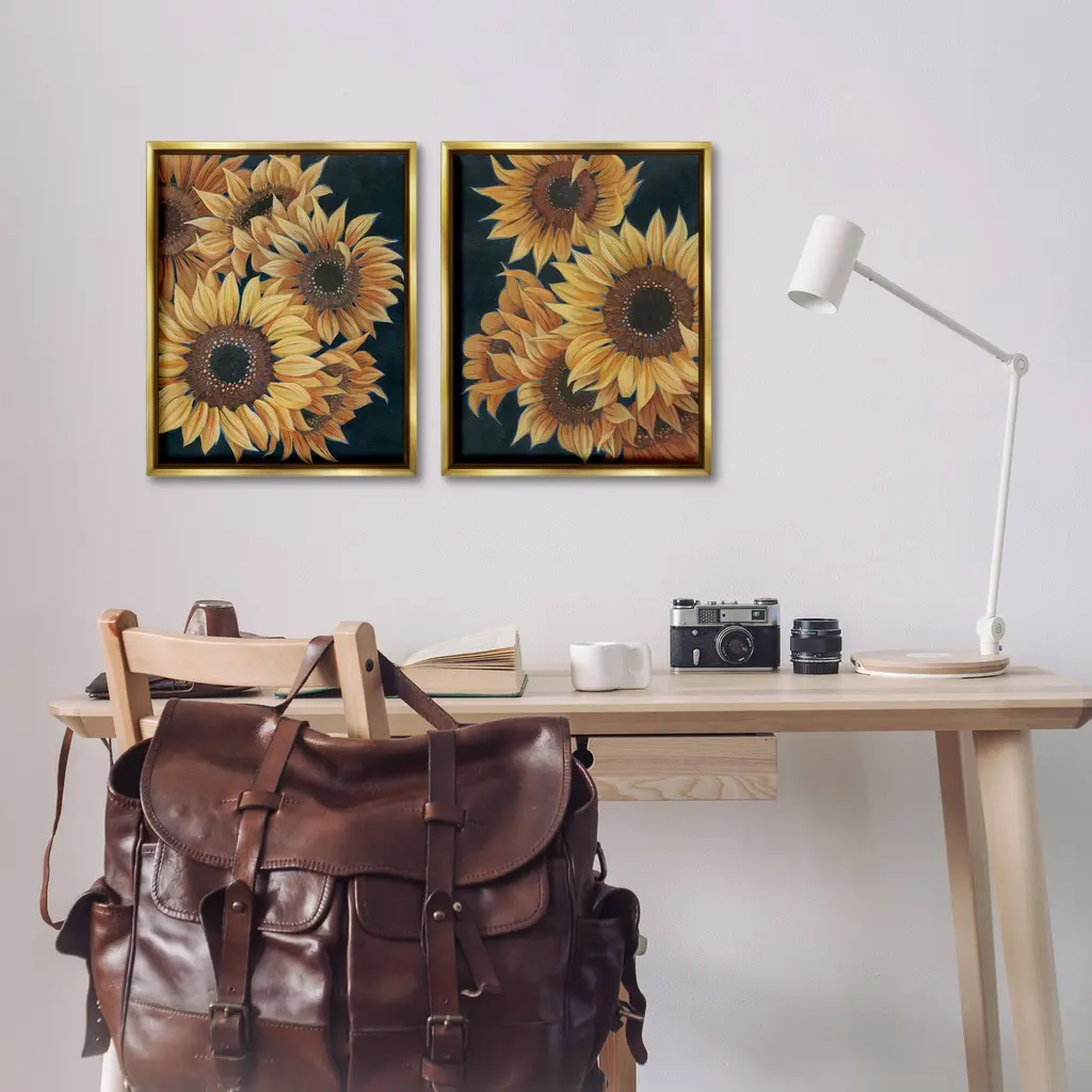 Elevate your home or office to the next level with Stupell Framed Floating Canvas Wall Art. Our premium hand-stretched canvas is mounted securely into a sturdy lightweight frame. The museum-style gap between the wrapped canvas and the box frame gives the illusion of floating artwork. Stupell Wall Art is made in the USA.Features: Dimensions: 2 Piece Set, Each Frame is 17 x 1.7 x 21Two Piece Floater Framed Canvas are available as 17x21 or 25x31 Panels. All Floater Frame Products have a 1.7" Depth.Wall Art is Ready to Hang with Hardware Free Hanging. No Installation required. For Easy Set Up Lean or Layer Artwork on Shelf or Against Wall. Artwork is Permently Fixed into the Frame.Our elevated 1.7" Thick Floating Frame is the perfect complement to our canvas style Wall Art. We use only the highest quality inks in house with industry leading printing solutions. Canvas is hand stretched over a durable wood foundation and then mounted securly into a Modern Box Frame. Made in the USA.Artwork Relates To: Flower, Plant, Sunflower, Pattern, Country, Traditional, BlossomDesign by Grace Popp