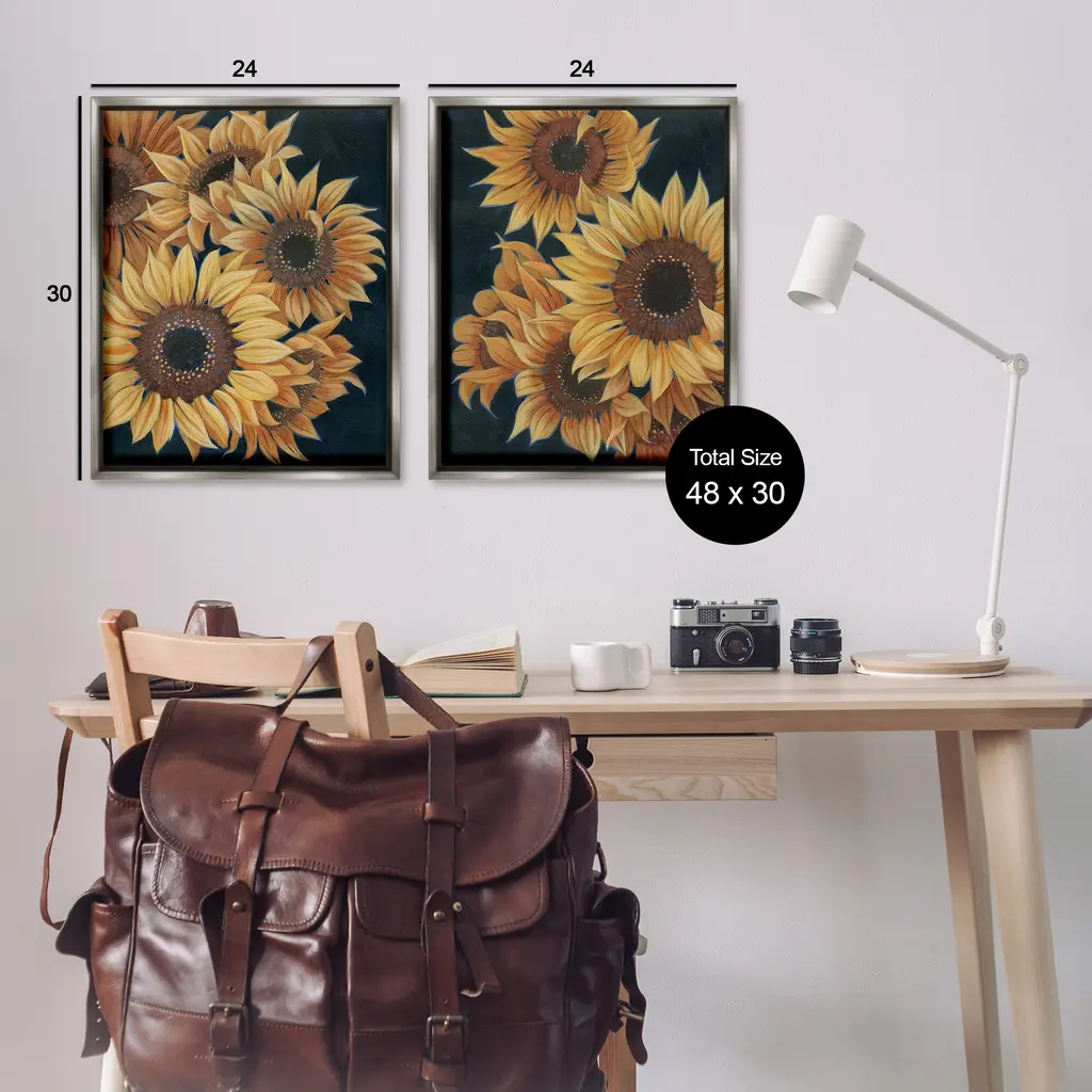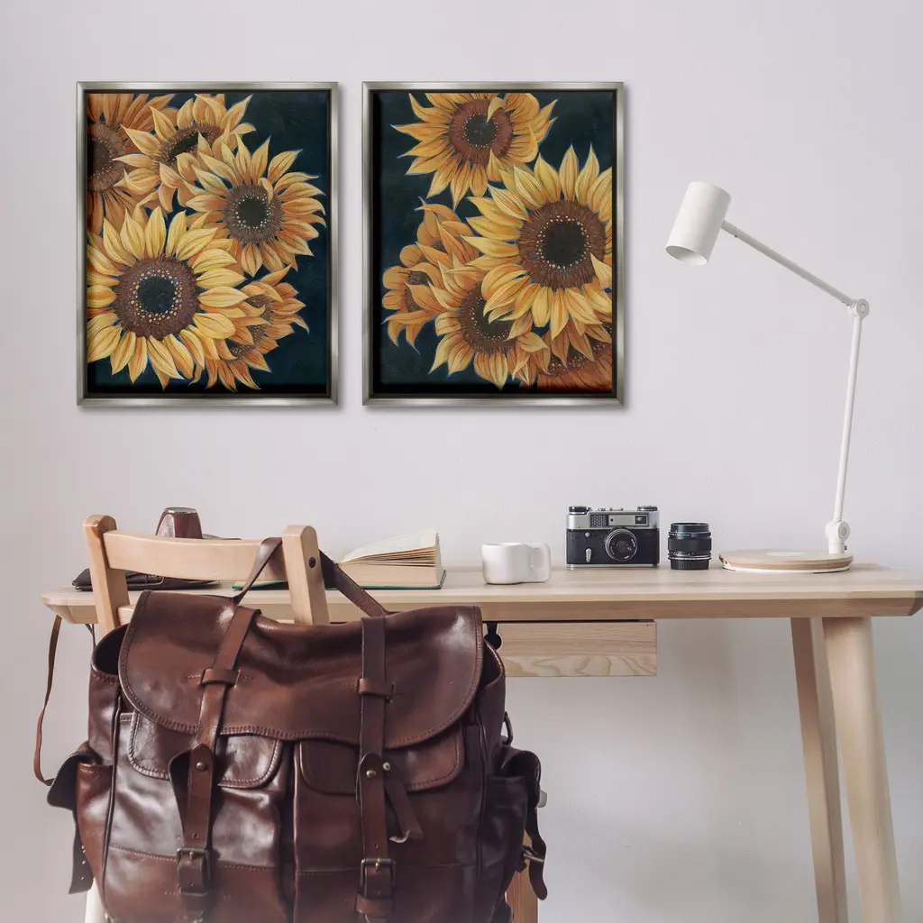 Elevate your home or office to the next level with Stupell Framed Floating Canvas Wall Art. Our premium hand-stretched canvas is mounted securely into a sturdy lightweight frame. The museum-style gap between the wrapped canvas and the box frame gives the illusion of floating artwork. Stupell Wall Art is made in the USA.Features: Dimensions: 2 Piece Set, Each Frame is 17 x 1.7 x 21Two Piece Floater Framed Canvas are available as 17x21 or 25x31 Panels. All Floater Frame Products have a 1.7" Depth.Wall Art is Ready to Hang with Hardware Free Hanging. No Installation required. For Easy Set Up Lean or Layer Artwork on Shelf or Against Wall. Artwork is Permently Fixed into the Frame.Our elevated 1.7" Thick Floating Frame is the perfect complement to our canvas style Wall Art. We use only the highest quality inks in house with industry leading printing solutions. Canvas is hand stretched over a durable wood foundation and then mounted securly into a Modern Box Frame. Made in the USA.Artwork Relates To: Flower, Plant, Sunflower, Pattern, Country, Traditional, BlossomDesign by Grace Popp