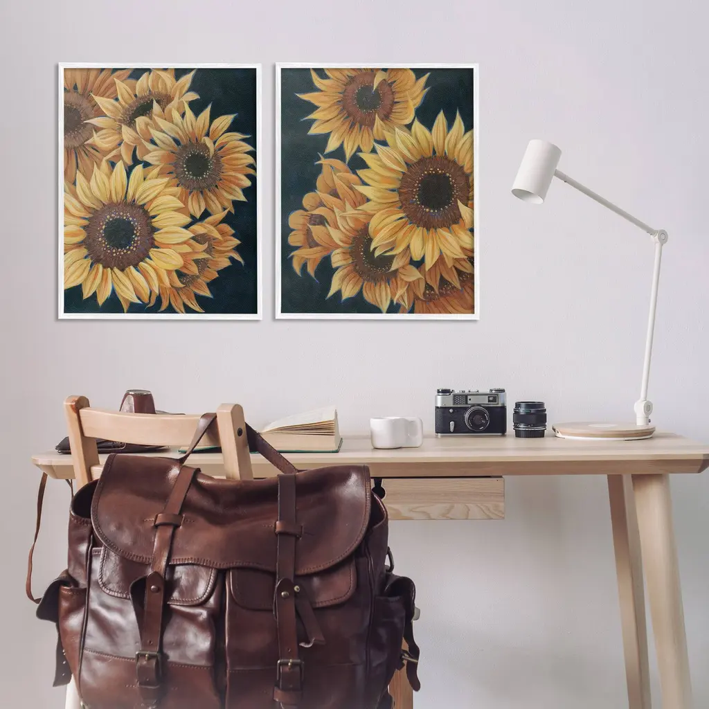 Fill any space in your home or office with our Framed Wall Art Sets. Our framed artwork is securely mounted into a 1.5-inch thick wood grain frame and ready to hang. Frames are available in three alluring styles: black, gray farmhouse and white. Stupell Wall Art is made in the USA.Features: Dimensions: 2 Piece Set, Each Panel is 11 x 1.5 x 14 FramedTwo Piece Framed Giclee Sets are available as 11"x14", 16"x20" or 24"x30" Panels. All Framed Giclee Products have a 1.5" Depth.Wall Art is Ready to Hang with Hardware Free Hanging. No installation required. For Easy Set Up Lean or Layer Artwork on Shelf or Against Wall.Curated Wall Art Sets make it easy for you complete the theme for any room. Our giclée prints are carefully mounted on a durable MDF backing, and then perfectly finished in a 1.5 inch thick woodgrain frame. Mounted frame colors include black, gray farmhouse and white. Made In USA.Artwork Relates To: Flower, Plant, Sunflower, Pattern, Country, Traditional, BlossomDesign by Grace Popp