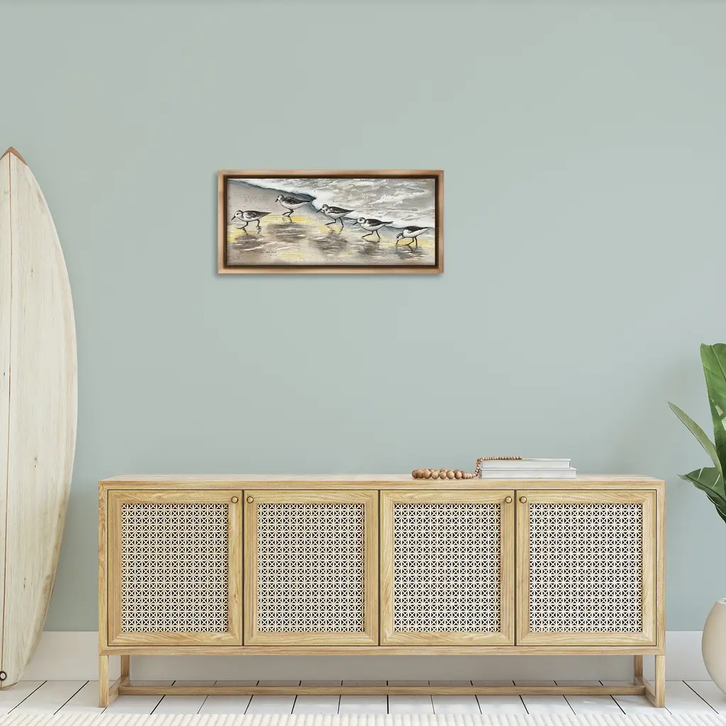 Elevate your home or office to the next level with Stupell Framed Floating Canvas Wall Art. Our premium hand-stretched canvas is mounted securely into a sturdy lightweight frame. The museum-style gap between the wrapped canvas and the box frame gives the illusion of floating artwork. Stupell Wall Art is made in the USA.Features: Dimensions: 25 x 1.7 x 11 Frame, 24 x 1.5 x 10 Canvas ArtFloating Frame Canvas Products are available in sizes 25"x11" and 31"x14". All Floating Frame Canvas Products have a 1.7" Depth.Wall Art is Ready to Hang with Hardware Free Hanging. No Installation required. For Easy Set Up Lean or Layer Artwork on Shelf or Against Wall. Artwork is Permently Fixed into the Frame.Our elevated 1.7" Thick Floating Frame is the perfect complement to our canvas style Wall Art. We use only the highest quality inks in house with industry leading printing solutions. Canvas is hand stretched over a durable wood foundation and then mounted securly into a Modern Box Frame. Made in the USA.Artwork Relates To: Animal, Beak, Bird, Sea, Water, Sea Waves, Waterfowl, Seagull, Sandpiper, Shore, Beach, NauticalDesign by Christine Reichow