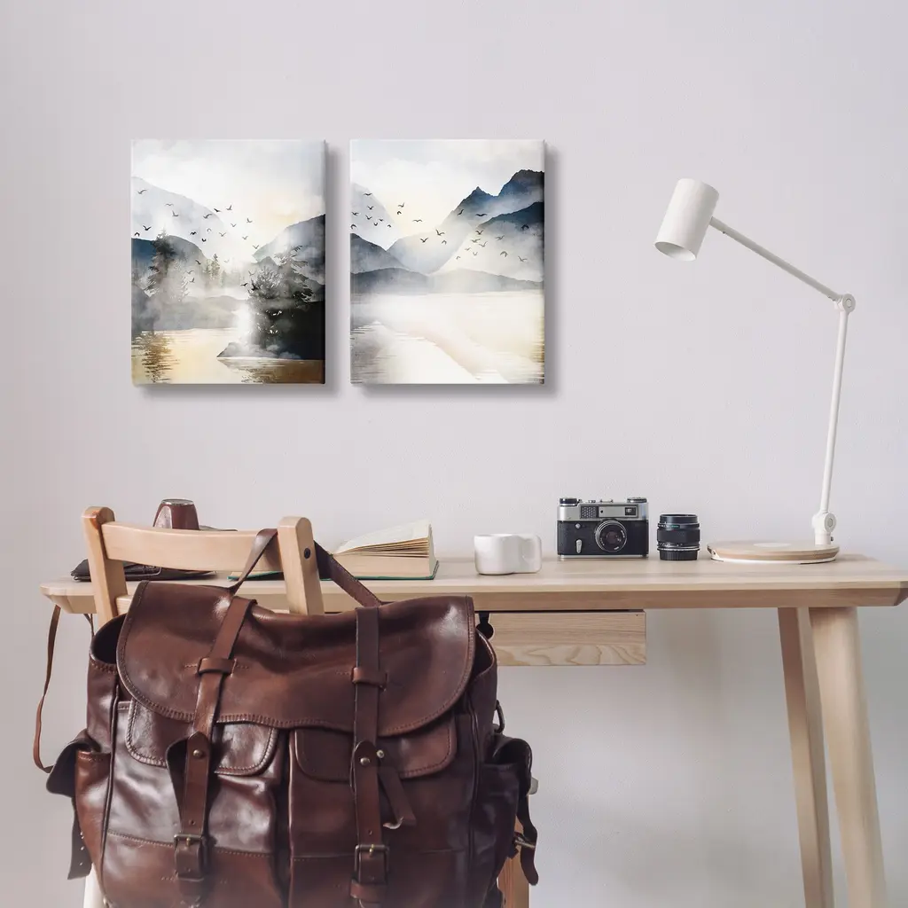 The more the better, right? Multi-Piece Canvas Sets help fill up the entire wall with excitement. Proudly made in the USA, Our stretched canvas is created with the highest standards. We use only the highest quality inks and canvas on our in house printers, and then hand cut and stretch each piece over a 1.5 inch thick wooden frame for hanging. The art comes ready to hang with no installation required. Room Type: Living Room, Den, Hallway, Office, Entryway, Study, Dining Room or Bedroom, Guest Room, Studio, Dorm or BoudoirFeatures: Dimensions: 2 Piece Set, Each Panel is 16 x 1.5 x 20 InchesTwo Piece Canvas Set Sizes Include Standard: 2pc, Each is 16 x 1.5 x 20 Oversized: 2pc, Each is 24 x 1.5 x 30Wall Art is Ready to Hang - No Installation or Hardware Needed. For Easy Set Up Lean or Layer Artwork on Shelf or Against Wall.Our stretched canvas is created with the highest standards. We use only the highest quality inks and canvas on our in house Mimaki printers, and then hand cut and stretch each piece over a 1.5 inch thick wooden frame for hanging. Made In USA.Artwork Relates To: Nature, Outdoors, Mountain, Nature, Birds, Water, Lake, SunlightDesign by JJ Design House LLC