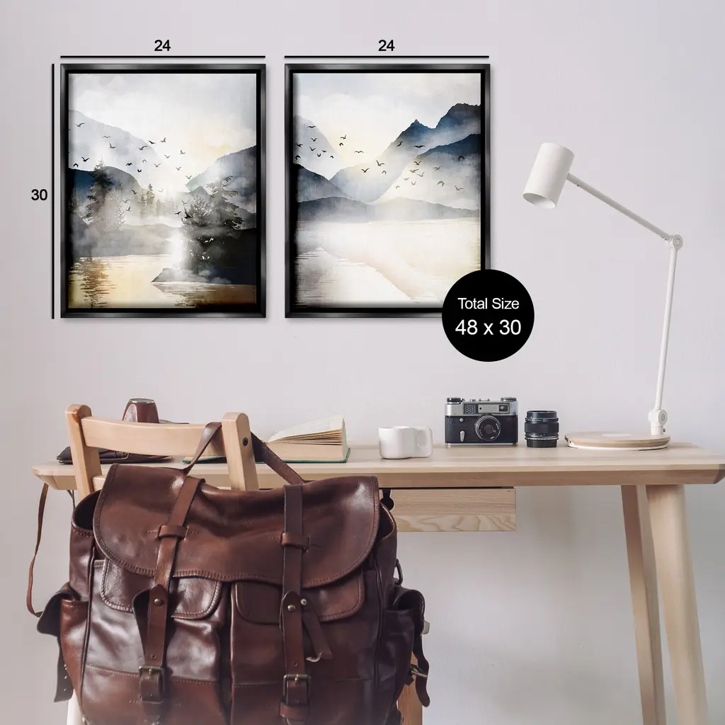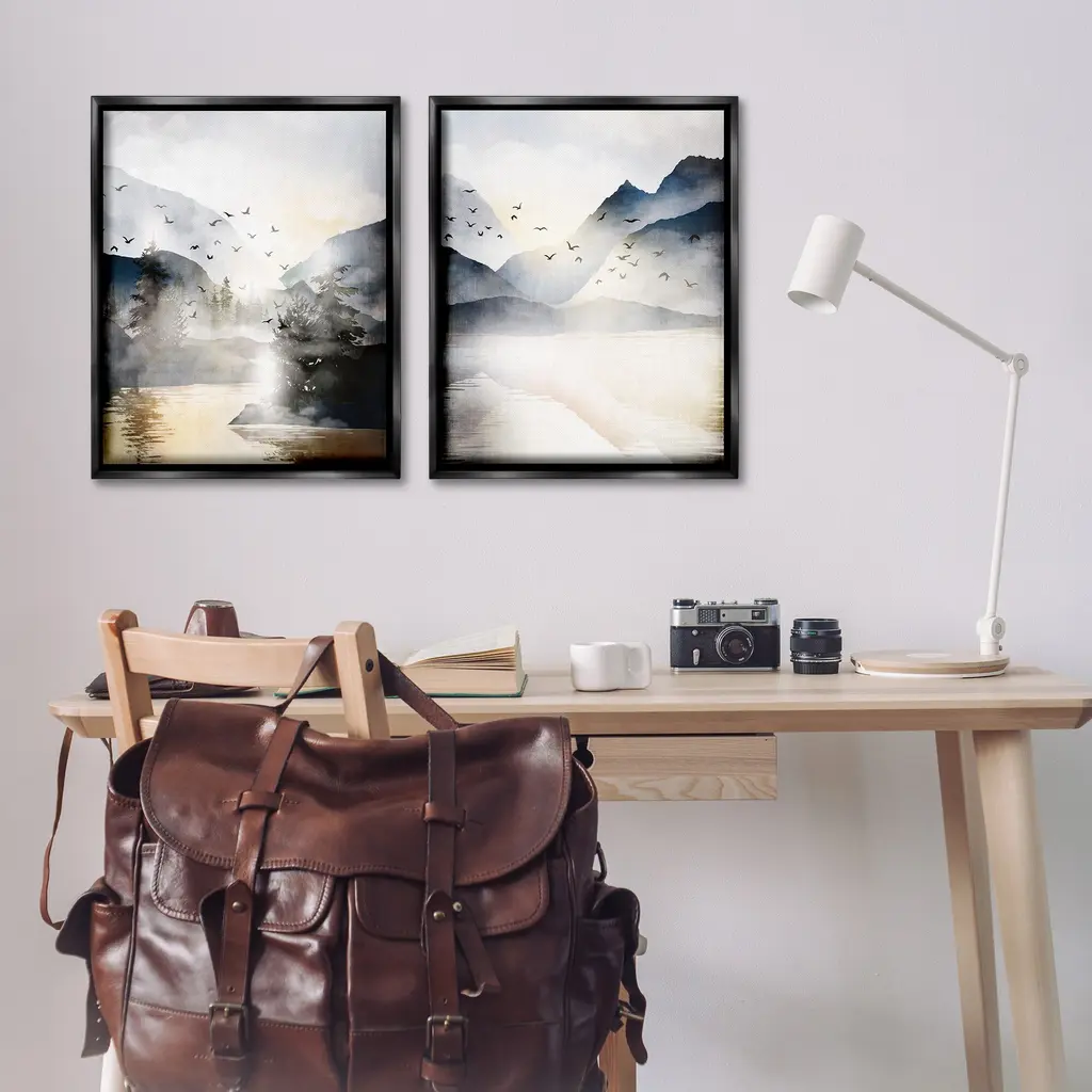 Elevate your home or office to the next level with Stupell Framed Floating Canvas Wall Art. Our premium hand-stretched canvas is mounted securely into a sturdy lightweight frame. The museum-style gap between the wrapped canvas and the box frame gives the illusion of floating artwork. Stupell Wall Art is made in the USA.Features: Dimensions: 2 Piece Set, Each Frame is 17 x 1.7 x 21Two Piece Floater Framed Canvas are available as 17x21 or 25x31 Panels. All Floater Frame Products have a 1.7" Depth.Wall Art is Ready to Hang with Hardware Free Hanging. No Installation required. For Easy Set Up Lean or Layer Artwork on Shelf or Against Wall. Artwork is Permently Fixed into the Frame.Our elevated 1.7" Thick Floating Frame is the perfect complement to our canvas style Wall Art. We use only the highest quality inks in house with industry leading printing solutions. Canvas is hand stretched over a durable wood foundation and then mounted securly into a Modern Box Frame. Made in the USA.Artwork Relates To: Nature, Mountain, Nature, Birds, Water, Lake, Sunlight, LandscapeDesign by JJ Design House LLC